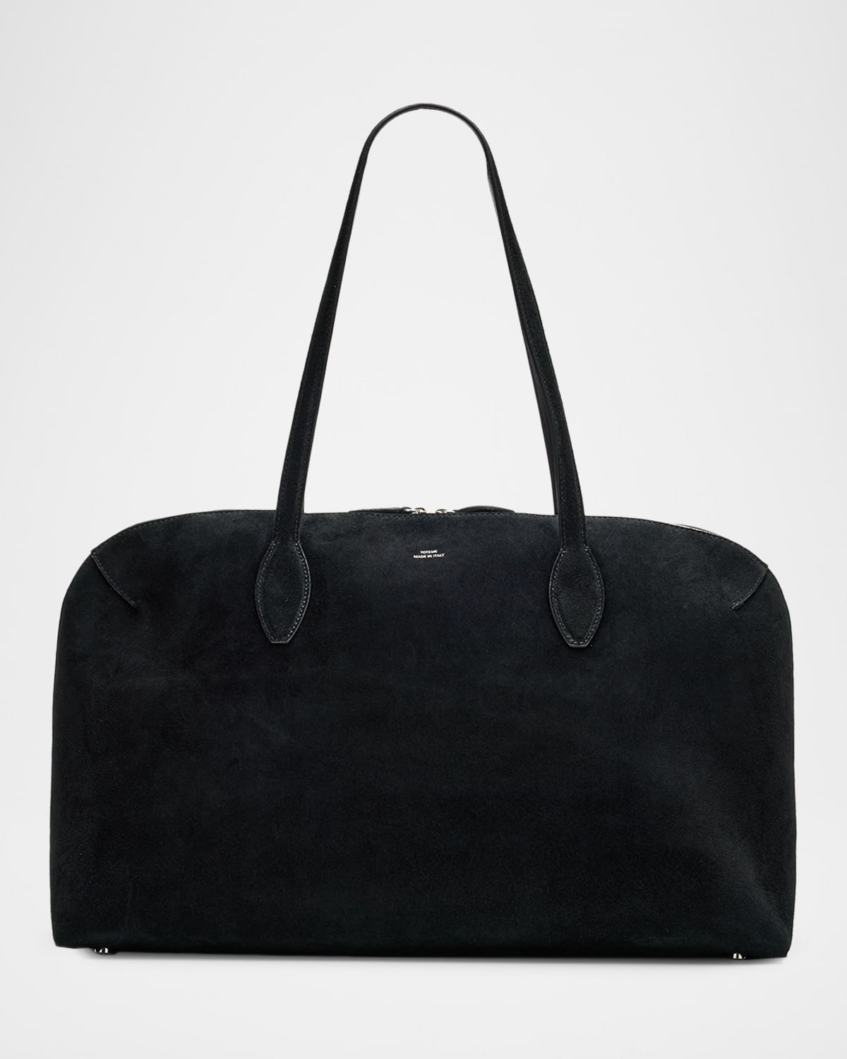 - Toteme suede day tote bag is designed for versatile use–perfect for everyday wear - Flat shoulder straps, 9.5" drop - Two-way zip top closure - Interior, two slip pockets - Microsuede lining - Feet protect the bottom of the bag - Approx. 11.2"H x 18"W x 9.5"D - Made in Italy