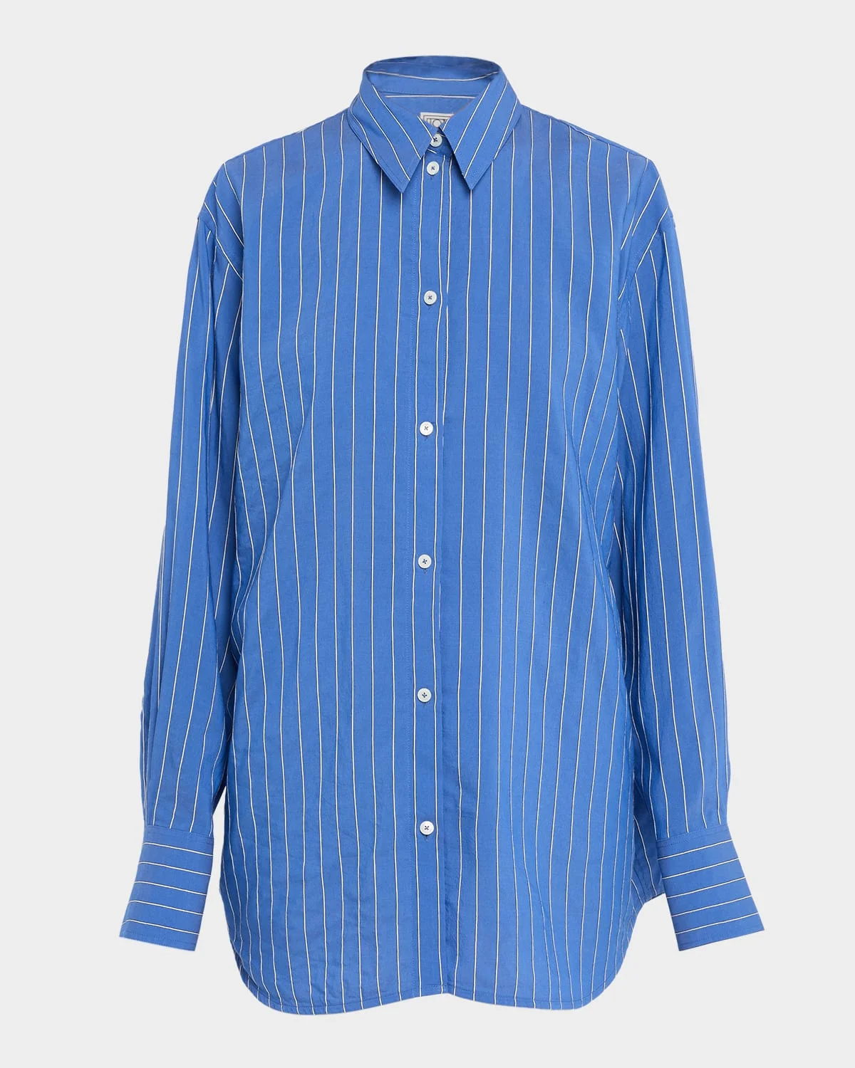 - Crisp and relaxed, this Toteme "Summer" shirt is cut in a breezy silhouette with fine vertical stripes, making it a versatile staple for warm-weather dressing. - Point collar; button front - Long sleeves; button cuffs - Yoked back; box pleat - Oversized fit - Shirttail hem - Cotton - Made in Italy