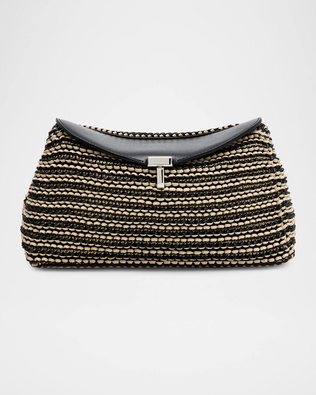 - Sculptural Toteme clutch bag named T-Lock after the gold-tone metal twist clasp securing the curved top flap. It is crafted in Italy from woven leather and opens to a microsuede interior fitted with a card slot. Hold it in your hand or carry it across the body using the optional strap. - Toteme "T-Lock" clutch bag in smooth and woven leather - Crossbody strap - Can be worn as clutch or crossbody bag - Flap top with T turn-lock closure - Interior, one card slot - Lining: Polyurethane - Approx. 5.5"H x 10.2"W x 3.3"D - Made in Italy