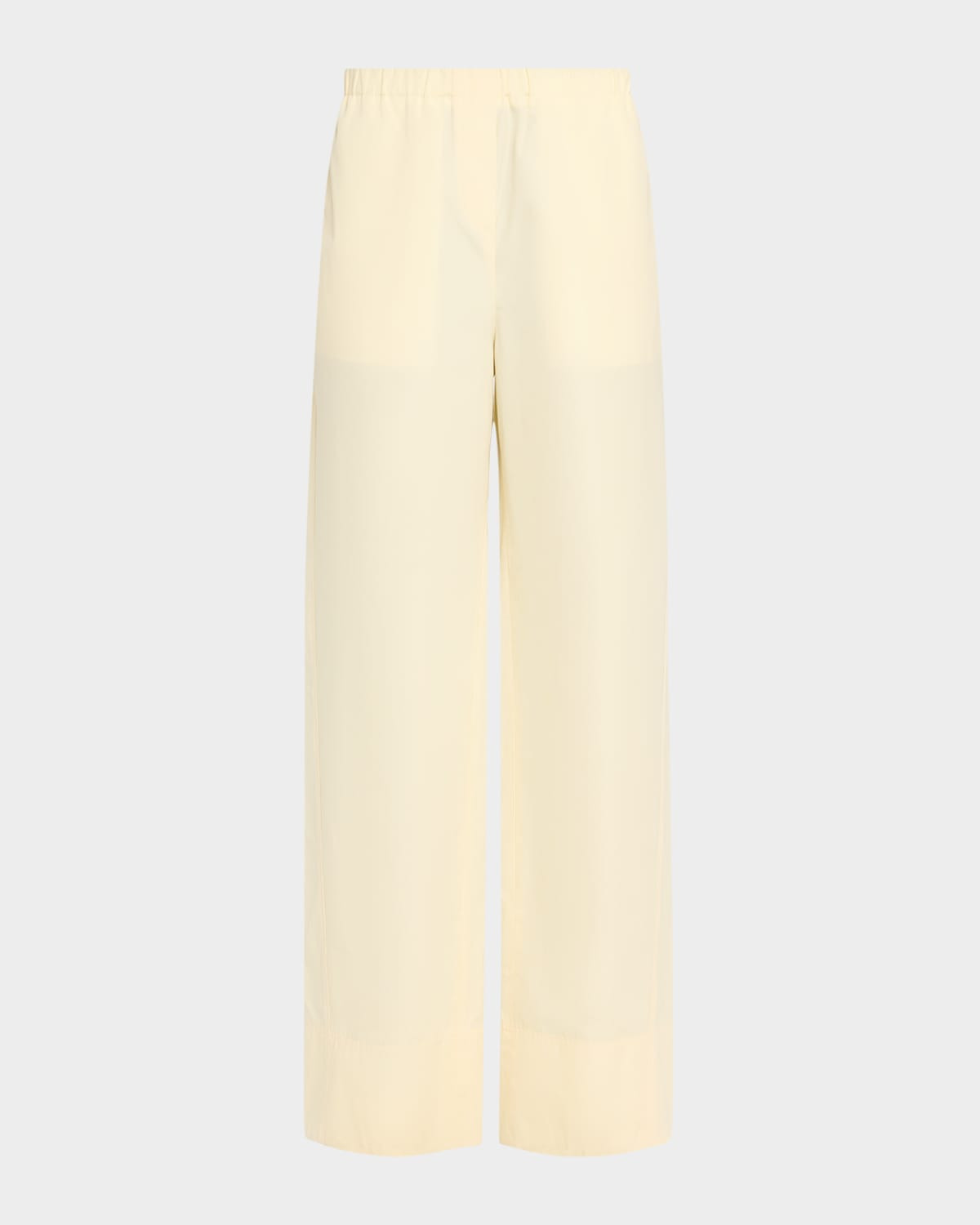 - Toteme boxer-inspired summer trousers made from airy organic-cotton poplin with signature twisted seams and an elasticized waistband - Mid rise sit high on hip - Side slip pockets; back patch pockets - Straight legs - Full length - Pull-on style - Organic cotton - Imported