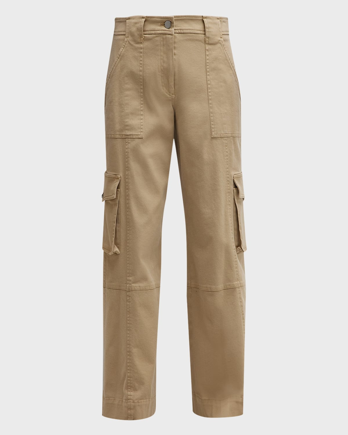TWP "Coop" utilitarian twill pants with contrast stitching Mid rise sits high on hip Side pockets; cargo pockets Wide legs Full length Button/zip fly; belt loops Cotton Dry clean only Made in USA from imported materials