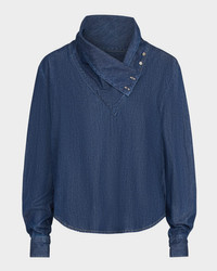 - TWP "My Maria" cotton denim shirt elevated with a unique draped asymmetric collar - Collared neckline; partial button placket - Long sleeves; button cuffs - Yoked back - Relaxed fit - Hip length - Slipover style - Cotton - Dry clean - Made in USA from imported materials