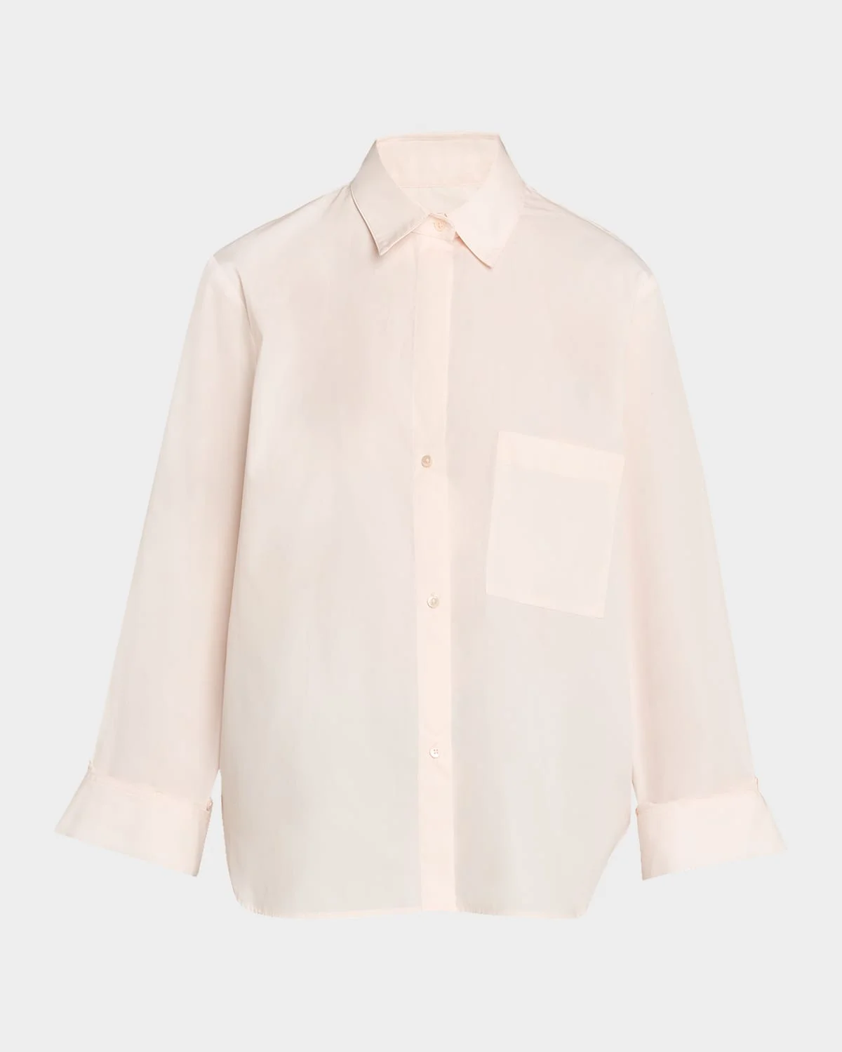 TWP "Next Morning" shirt crafted from superfine Italian cotton & nbsp; Point collar Long sleeves with button cuffs & nbsp; Chest pocket & nbsp; Oversized fit Hem falls to the hip Button-front & nbsp; Cotton Dry clean Made in USA SIZE & FITModel measurements: 5 & apos;10" tallModel is wearing a US size 4/Small