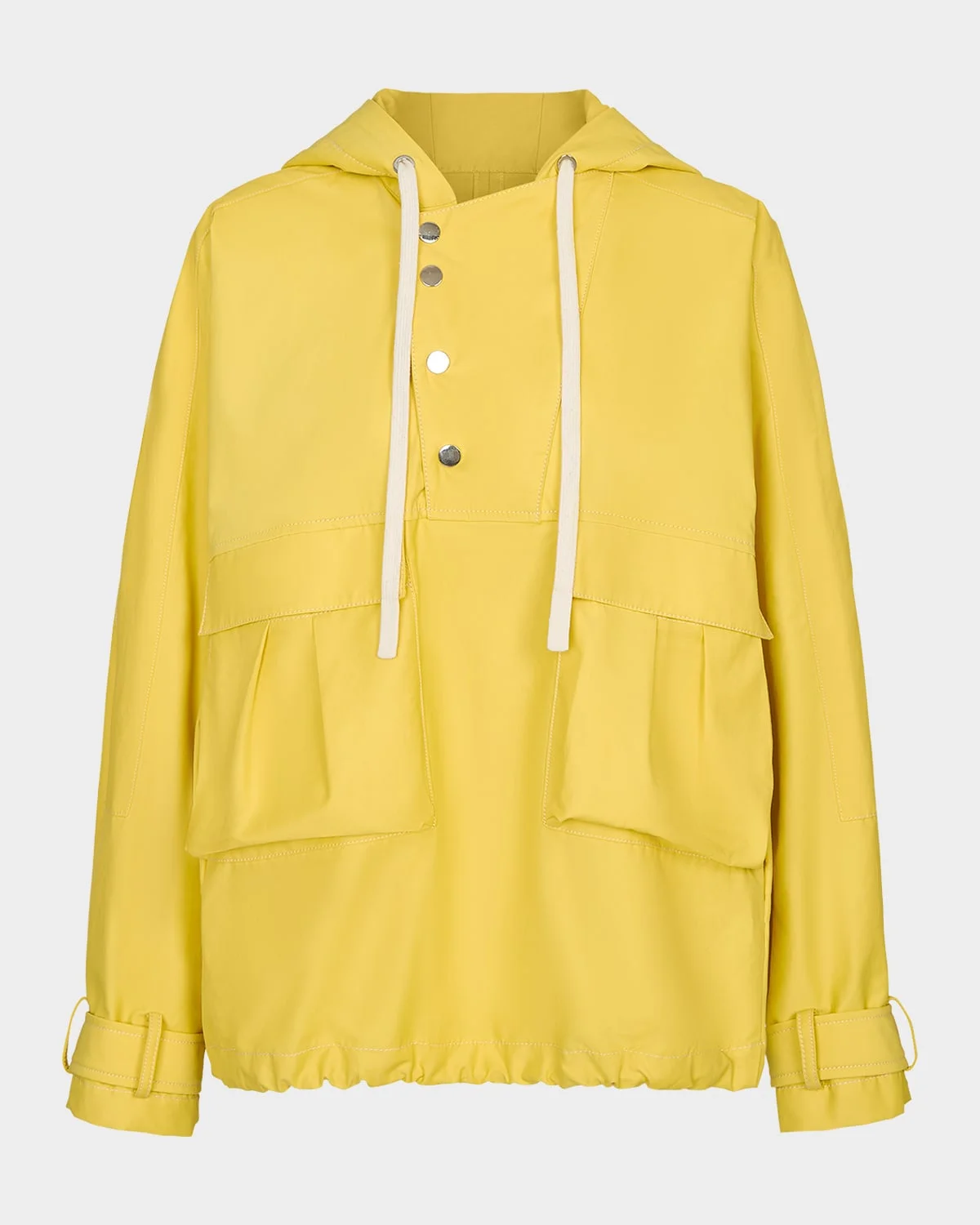 Designed in water-repellent twill, the "Rain Check" jacket by TWP is finished with a smooth, structured hand Hooded neckline; adjustable drawcods Long sleeves with belted cuffs Oversized patch pockets Relaxed fit Slightly cropped silhouette Partial snap front placket Pullover style Cotton/nylon/polyamide/polyurethane Dry clean Made in USA SIZE & FITModel measurements: 5 & apos;10" tallModel is wearing a US size 4/Small