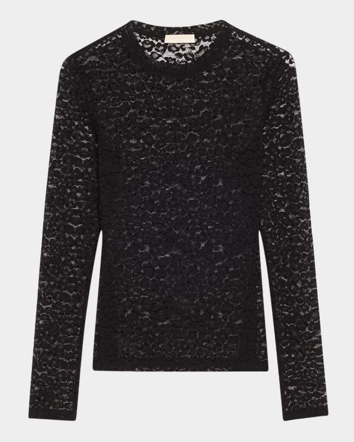 - Ulla Johnson "Anise" sheer leopard top - Crew neckline - Long sleeves - Fitted - Hem sits at the hip - Pullover style - Nylon/polyamide/cotton/elastane - Dry clean - Imported