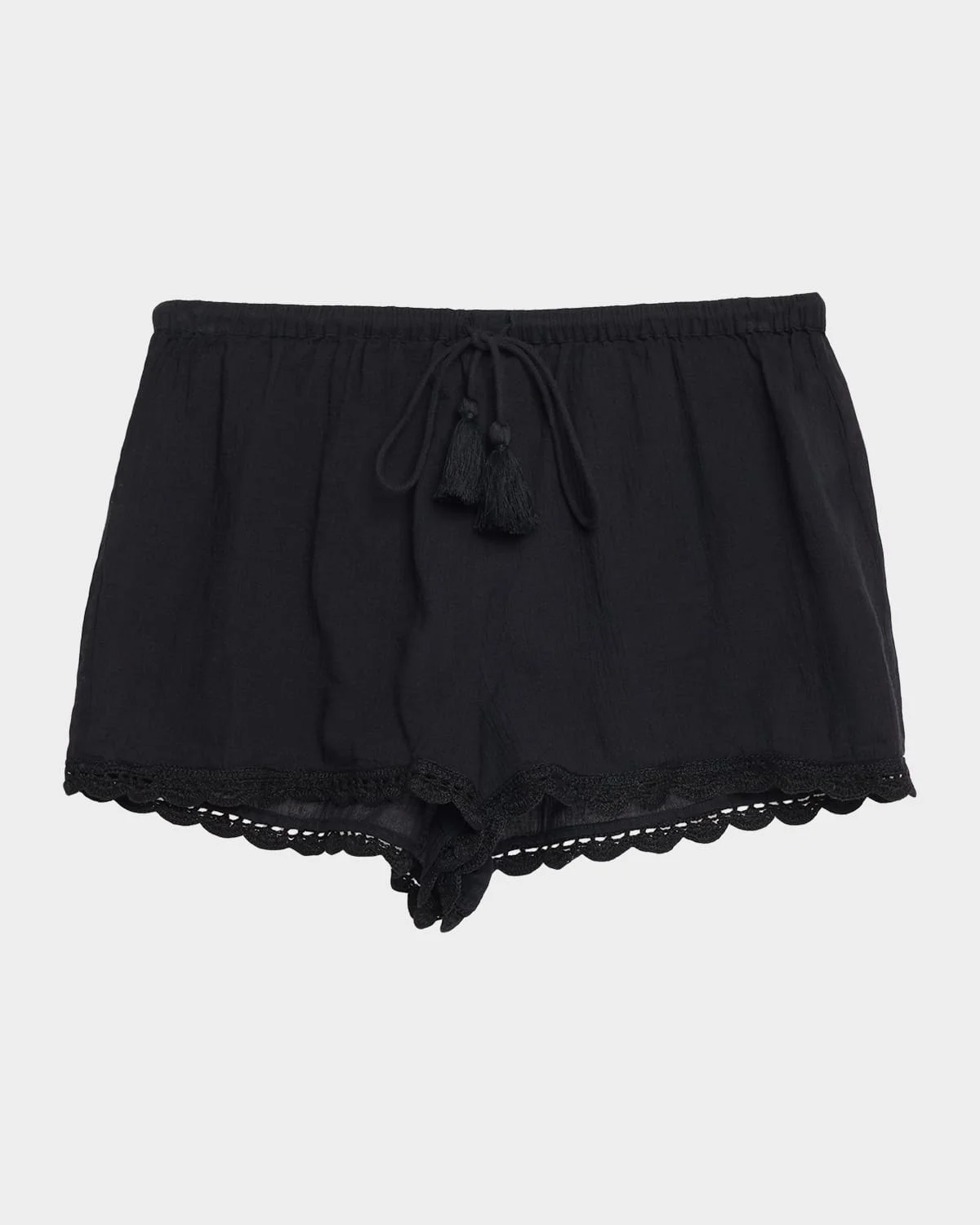 Ulla Johnson & apos;s "Aran" cover-up shorts are crafted from lightweight cotton with scalloped crochet trim and tassel tie ends High-rise drawstring waistband Relaxed legs Pull-on style Cotton Imported SIZE & FITModel measurements: 5 & apos;10" tallModel is wearing a US size 4/Small