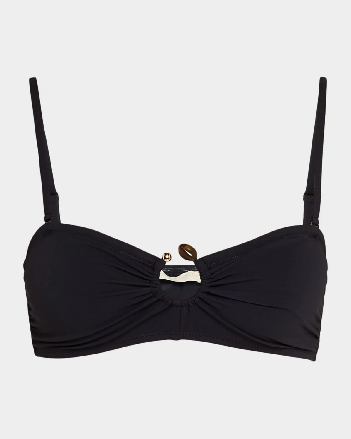 Ulla Johnson "Corfu" bandeau bikini top detailed with a stone-embellished ring & nbsp; Sweetheart neckline Adjustable, removable straps & nbsp; Pullover style & nbsp; Nylon/polyamide/elastane Hand wash cold & nbsp; Imported Bottoms sold separately