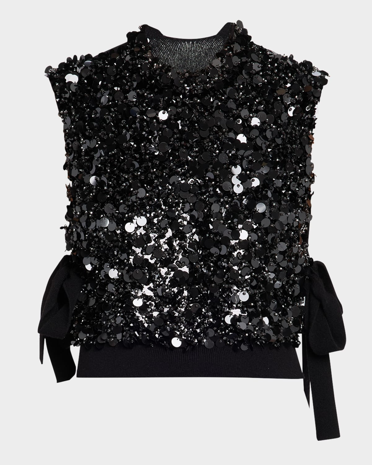 Crafted in luxurious cashmere and embellished allover with beads and pailettes, the "Cosima" vest by Ulla Johnson shimmers with every movement. Round neckline Sleeveless Selftie sides Relaxed fit Ribbed hem Pullovegr style Cashmere Dry clean only Imported