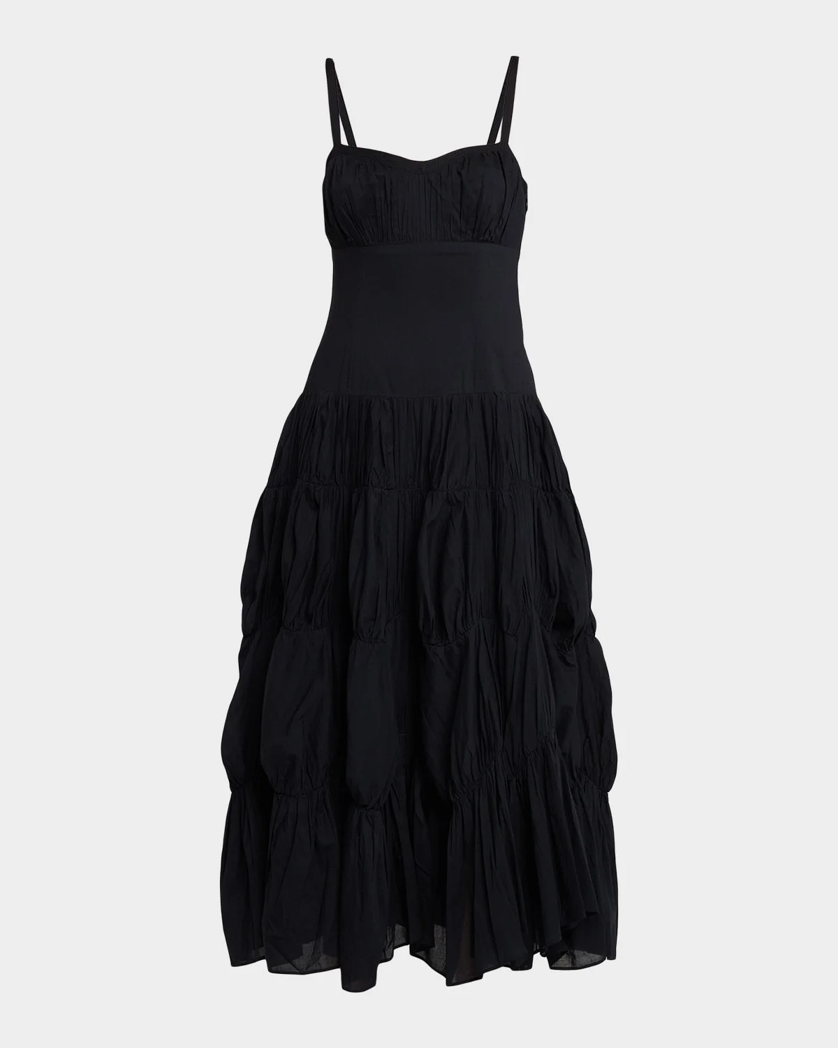 Finished with a voluminous tiered hem, the "Emmalina" dress by Ulla Johnson is crafted from breathable cotton and showcases soft gathers throughout. Sweetheart neckline & nbsp; Sleeveless Drop-waist silhouette Hem falls below the knee Invisible side zip & nbsp; Cotton Hand wash or dry clean Imported SIZE & FITModel measurements: 5 & apos;10" tallModel is wearing a US size 4/Small