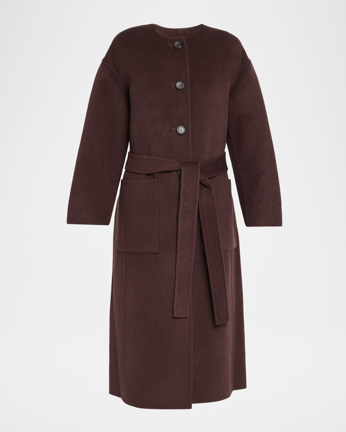 Crafted in doubleface wool, the "Fernanda" coat by Ulla Johnson is accented with an adjustable selftie belt to cinch the waist and add shape. Round neckline Singlebreasted front Dropped shoulders Long sleeves Patch pockets Relaxed fit Walking vent Buttonfront Wool/acrylic Dry clean only Imported