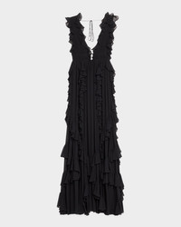 - Ulla Johnson "Florella" gown adorned with cascading ruffles - Plunge neckline with dual self-ties - Sleeveless - Back self-ties - Full length - A-line silhouette - Invisible back zipper - Silk - Lining: Polyester - Dry clean - Imported