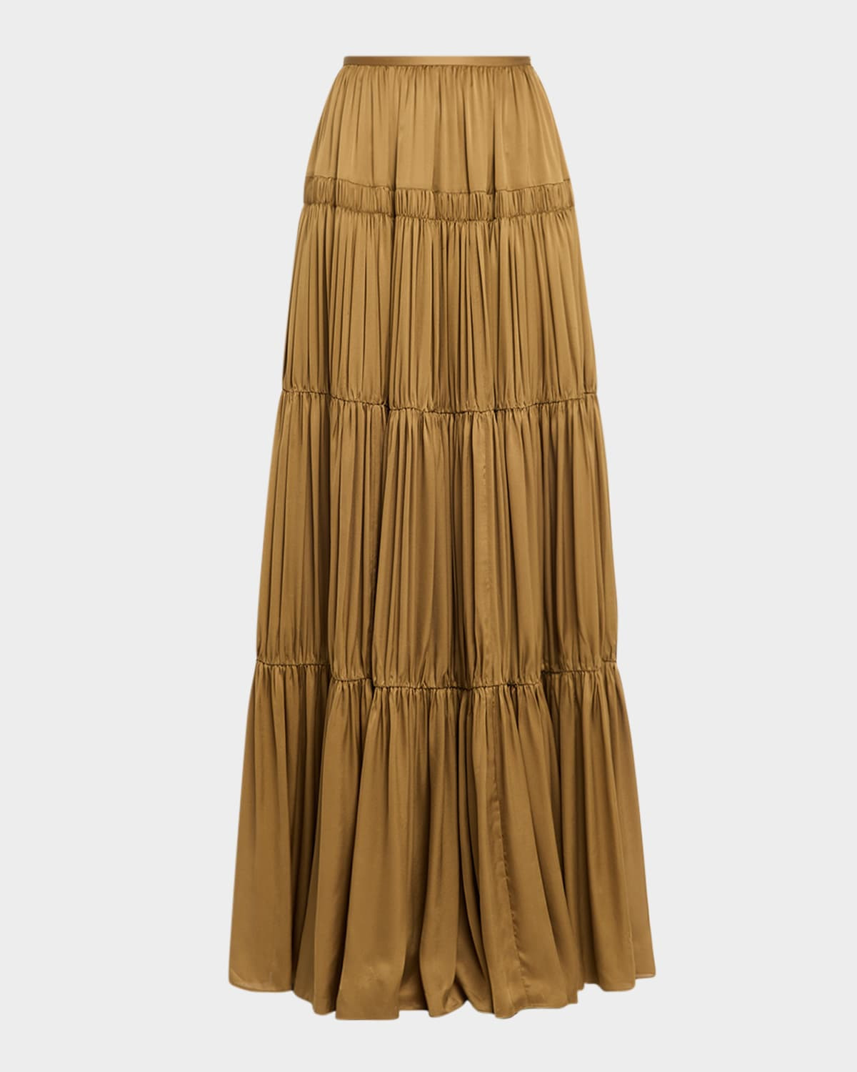 - Cut from satin-faced silk chiffon, the "Gaelle" floor-length skirt by Ulla Johnson consists of delicately gathered tiers for a billowing silhouette - Fixed high-rise waist - Full length - A-line silhouette - Concealed side zipper - Silk - Dry clean - Imported