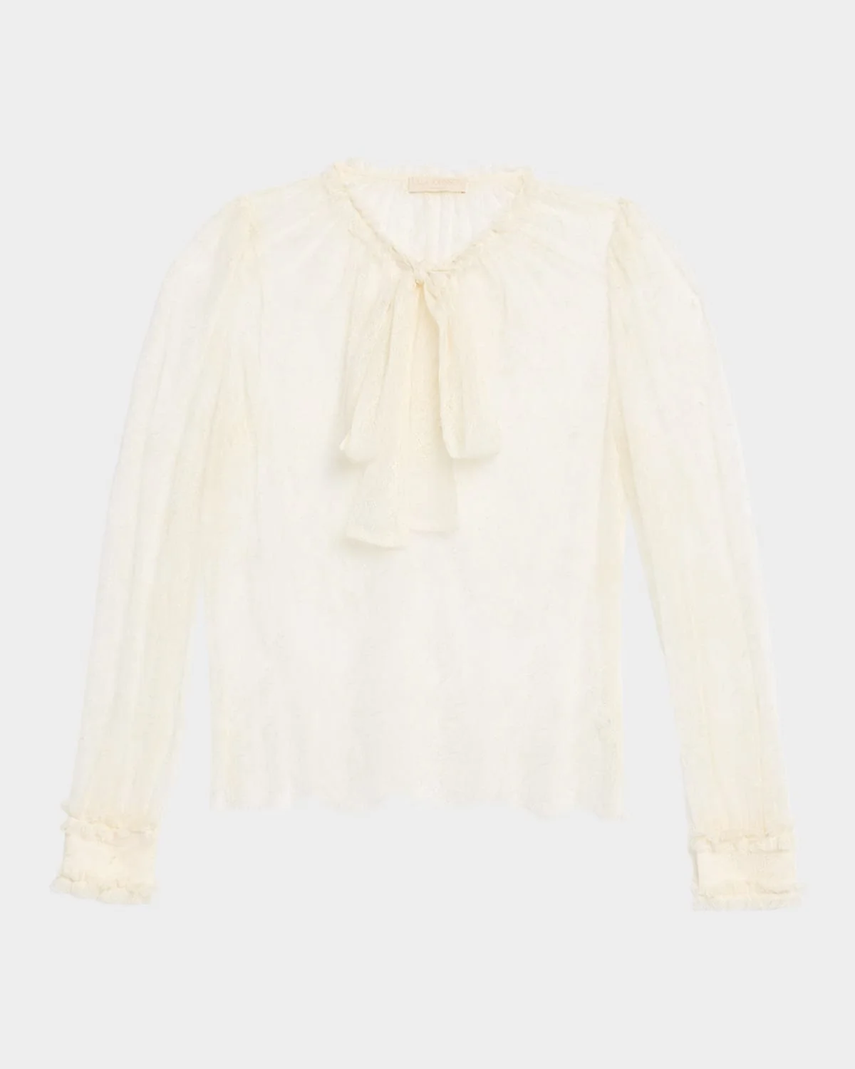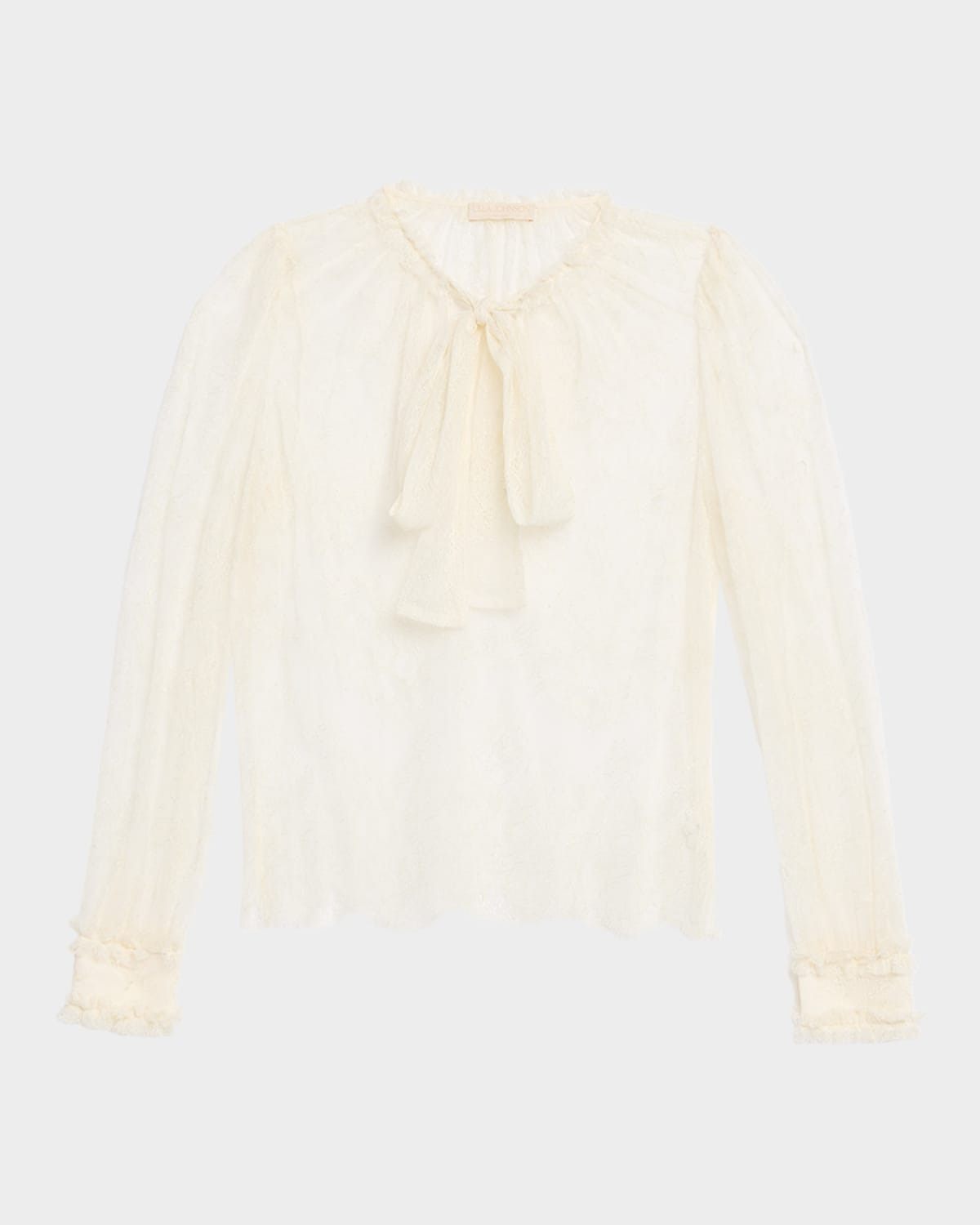 - Ulla Johnson "Iliana" lace blouse enhanced with a self-tie neckline - Long sleeves with button cuffs - Classic fit - Scalloped hem - Pullover style - Cotton - Dry clean - Imported