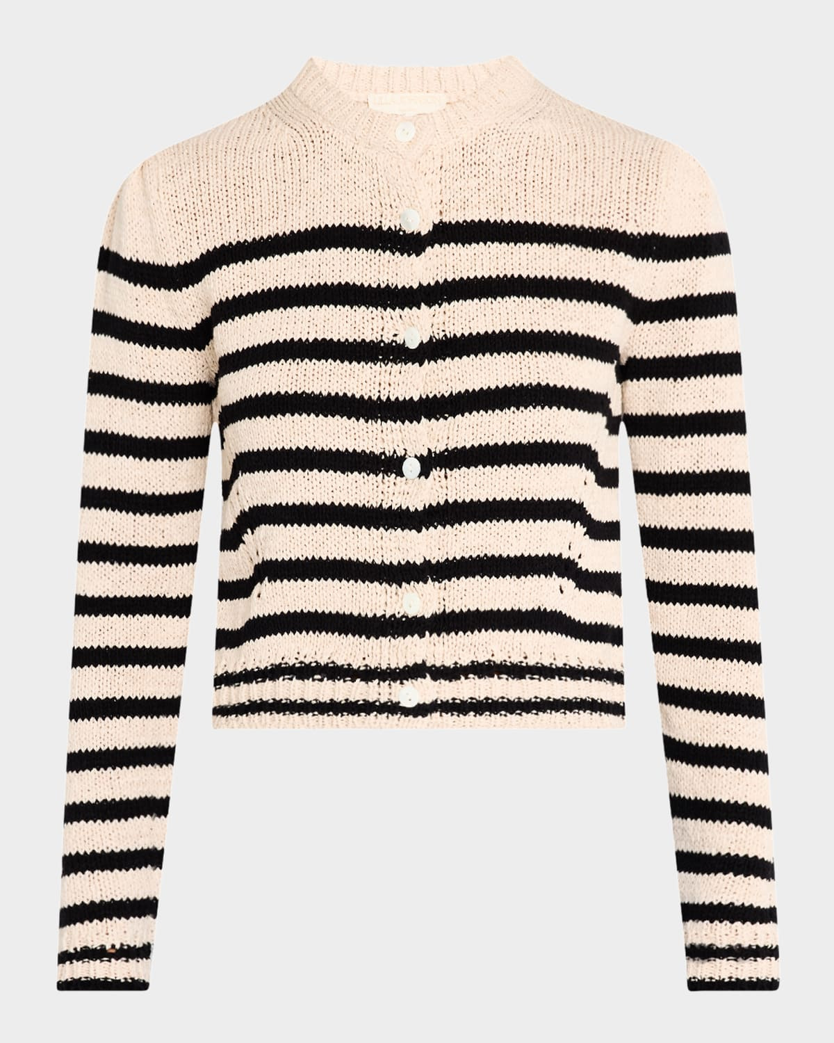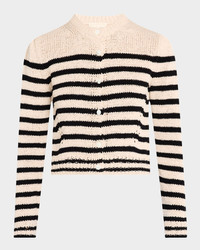 - Ulla Johnson "Joelle" stripe cotton cardigan with open-knit detailing - Crew neckline - Long sleeves; approx. 32.1"L - Classic fit - Hem sits at the hip - Button-front - Cotton - Dry clean - Imported