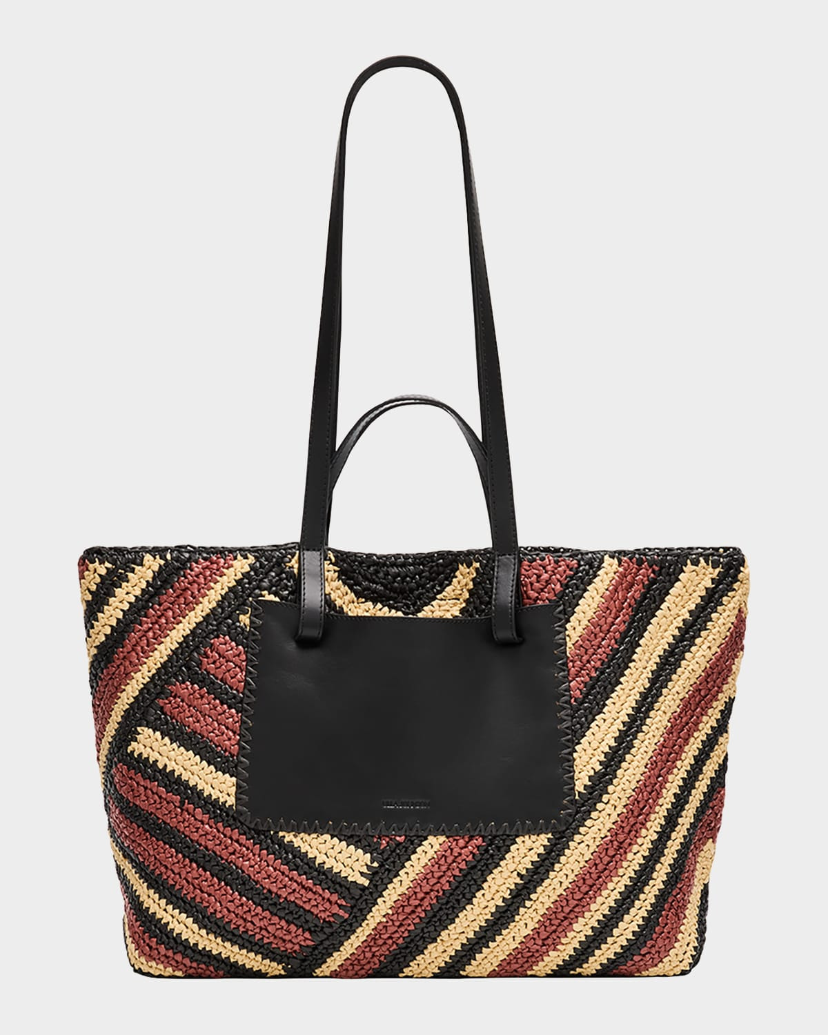 - Ulla Johnson "Lali" tote bag in striped raffia-like polypropylene - Top handles - Shoulder straps - Open top with magnetic closure - Exterior, one slip pocket - Approx. 10.8"H x 19"W x 4.8"D - Professional cleaning recommended - Imported