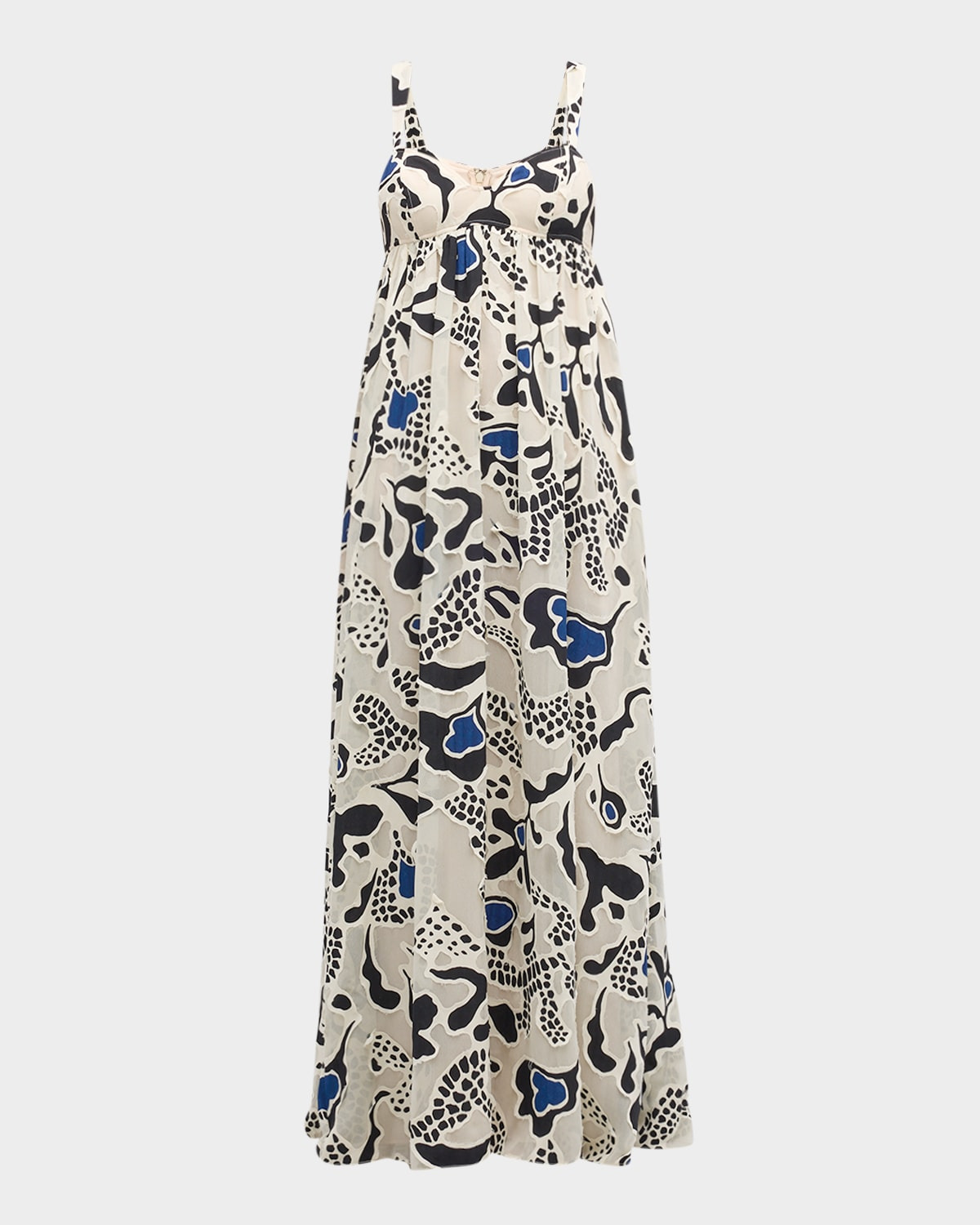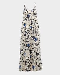 Ulla Johnson "Leilani" gown with rawcut abstractprint applique Approx. 61.5"L from shoulders to hem Sweetheart neckline Sleeveless Empire waist Onseam pockets Full length Aline silhouette Invisible back zipper Viscose/polyester Lining: Polyester Dry clean Imported
