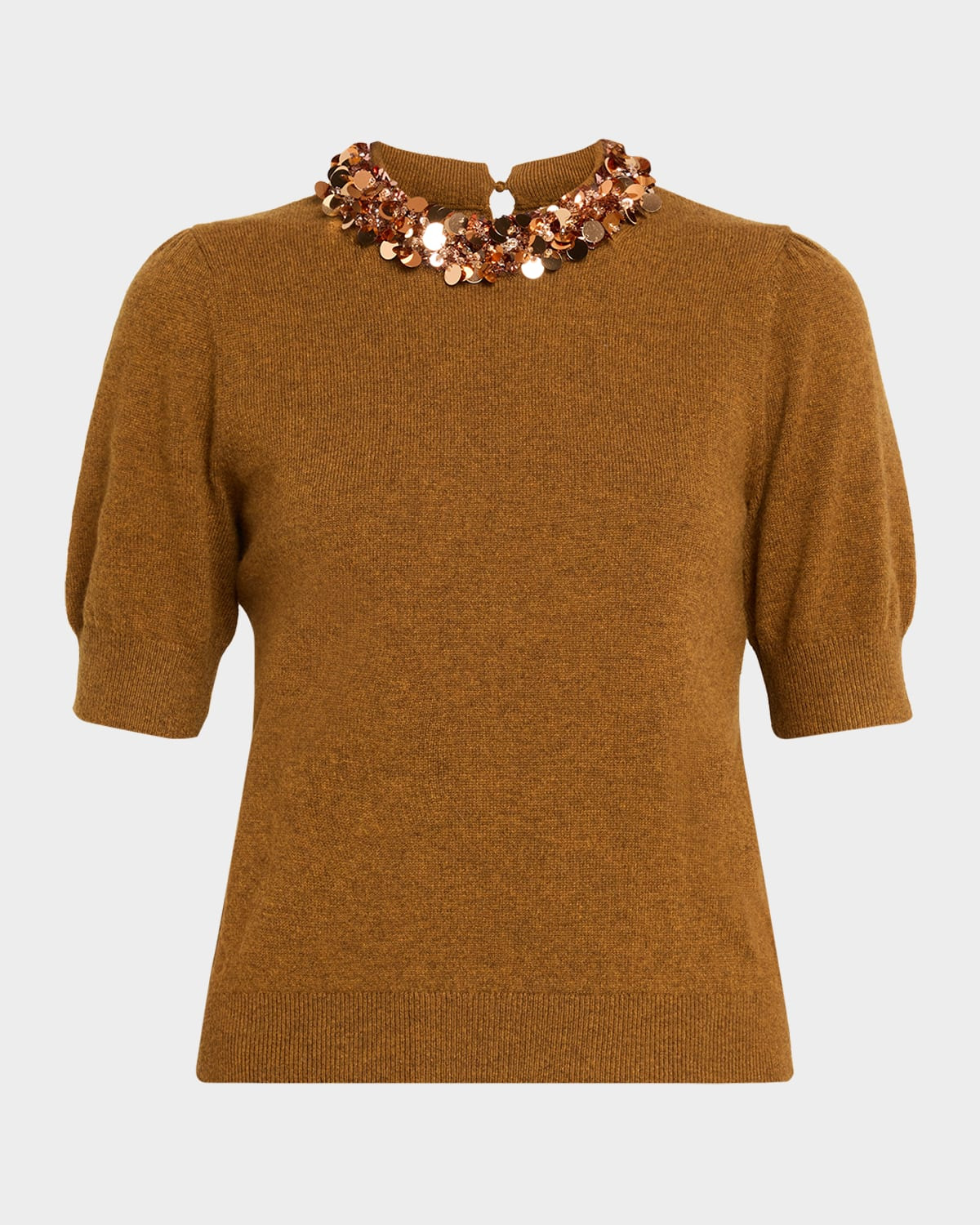 Liv Embroidered Short-Sleeve Cashmere Sweater