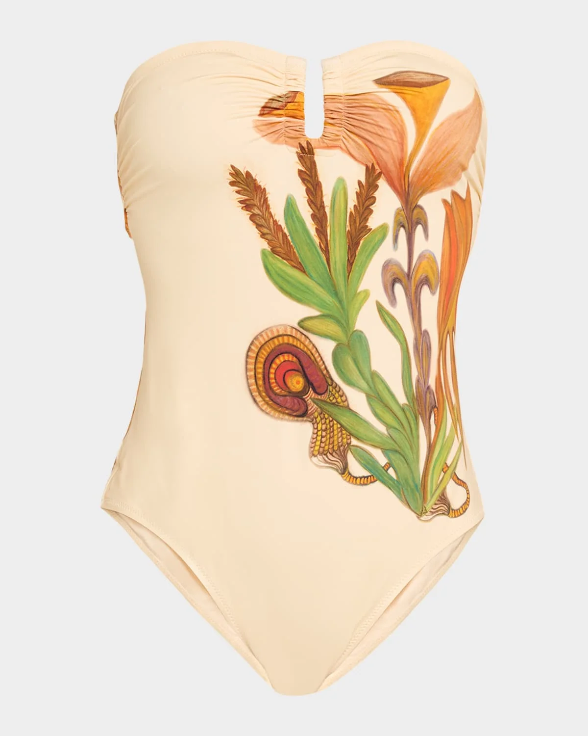 Patterned with botanical motifs, the "Monterey" one-piece swimsuit by Ulla Johnson is crafted from Italian swim fabric and finished with central U-ring hardware Strapless neckline Moderate seat coverage Nylon/polyamide/elastane Made in Portugal