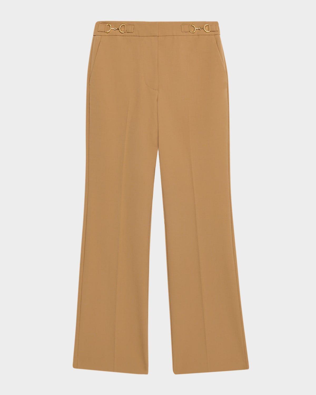 Ulla Johnson "Quartier" woolblend pants elevated with goldtone chain detailing Midrise; sits high on the hip Fourpocket style Straight legs Full length Hook/zip fly Polyester/virgin wool/elastane Imported