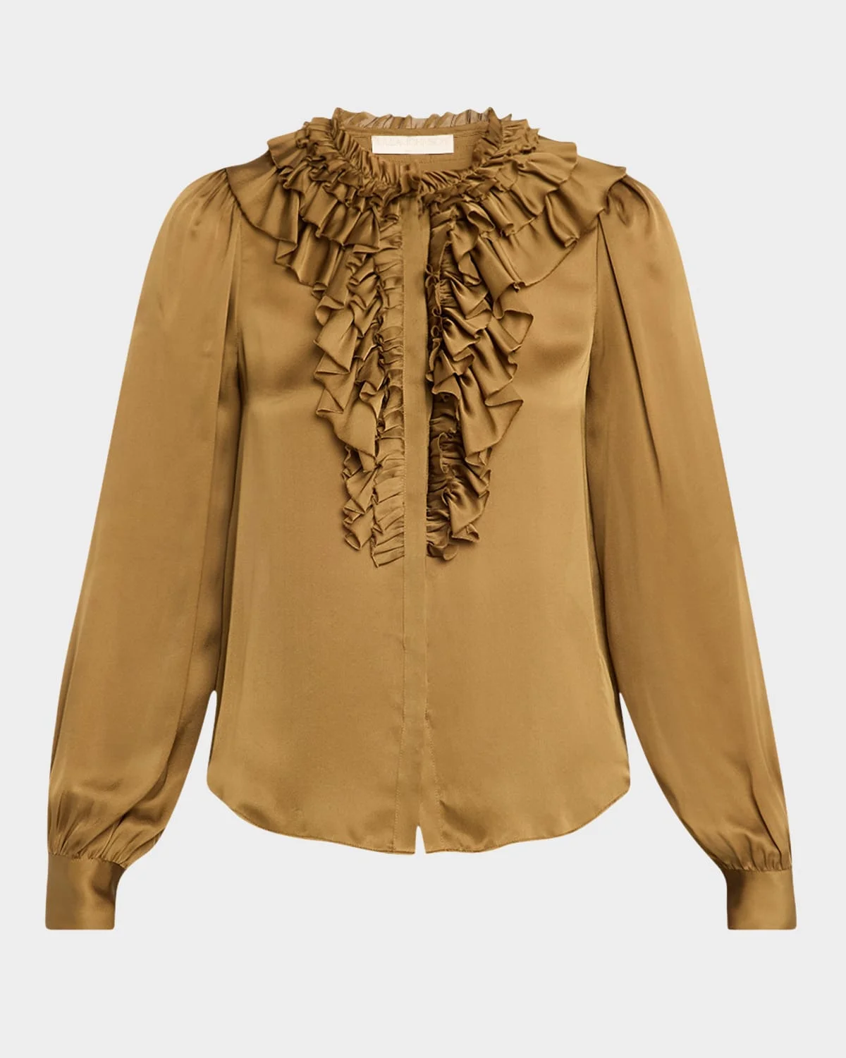 - Ulla Johnson "Rouen" silk blouse finished with a ruffled front - Crew neckline; concealed button-front - Long sleeves with button cuffs - Classic fit - Hem falls to the hip - Silk - Imported