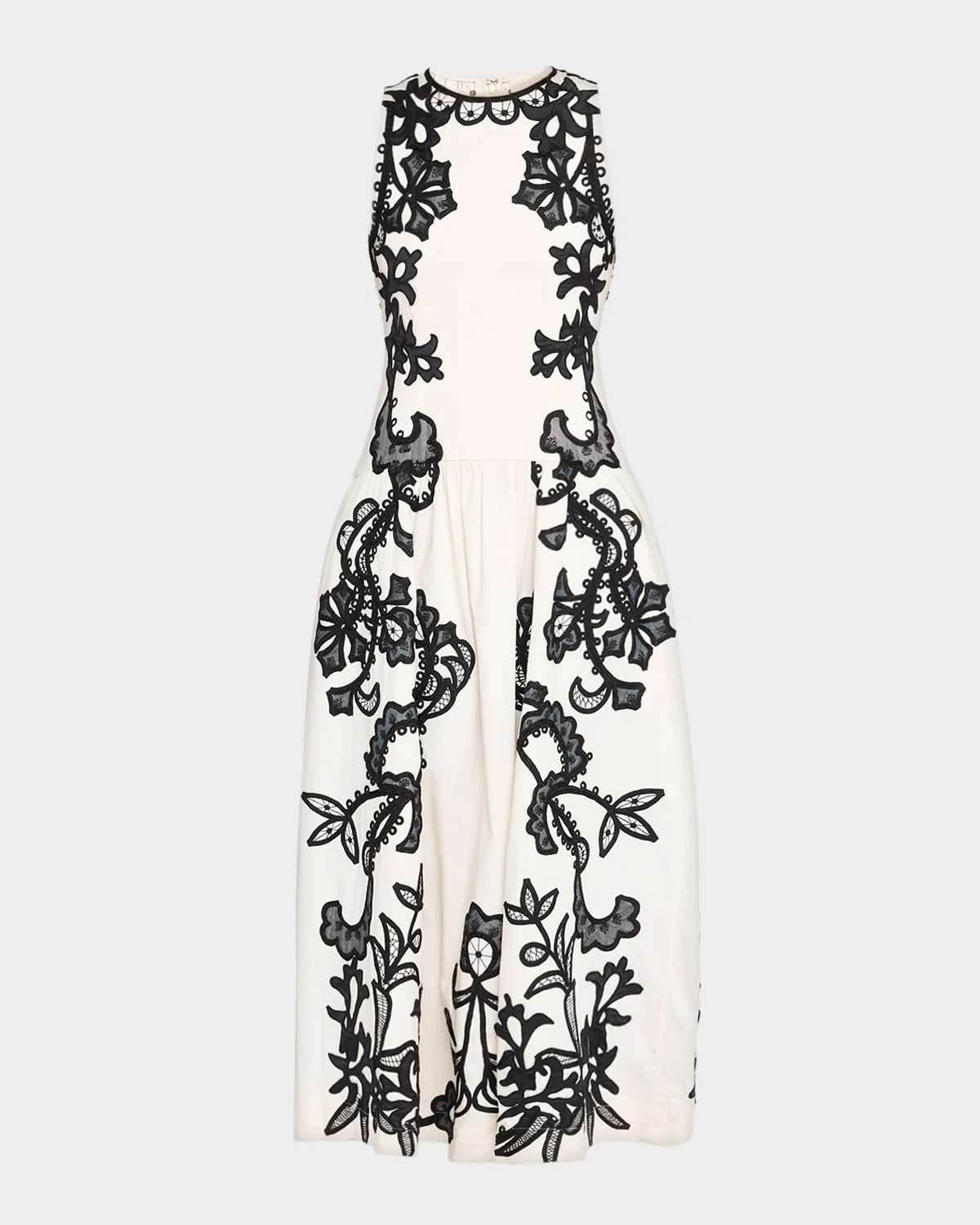 Adorned with bold, contrast & nbsp;embroidery, the "Sonali" midi dress by Ulla Johnson is crafted in signature cotton poplin and finished with a voluminous skirt. High neckline Sleeveless Drop-waist silhouette Hem falls below the knee Center back zip Cotton Dry clean only & nbsp; Imported