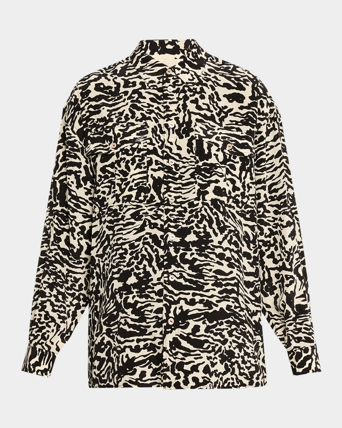 The Ulla Johnson "Soren" shirt blooms with a vinelike floral batik print atop silk crepe de chine. Spread collar Long sleeves with button cuffs Front patch pockets Relaxed fit Button front closure Silk Imported
