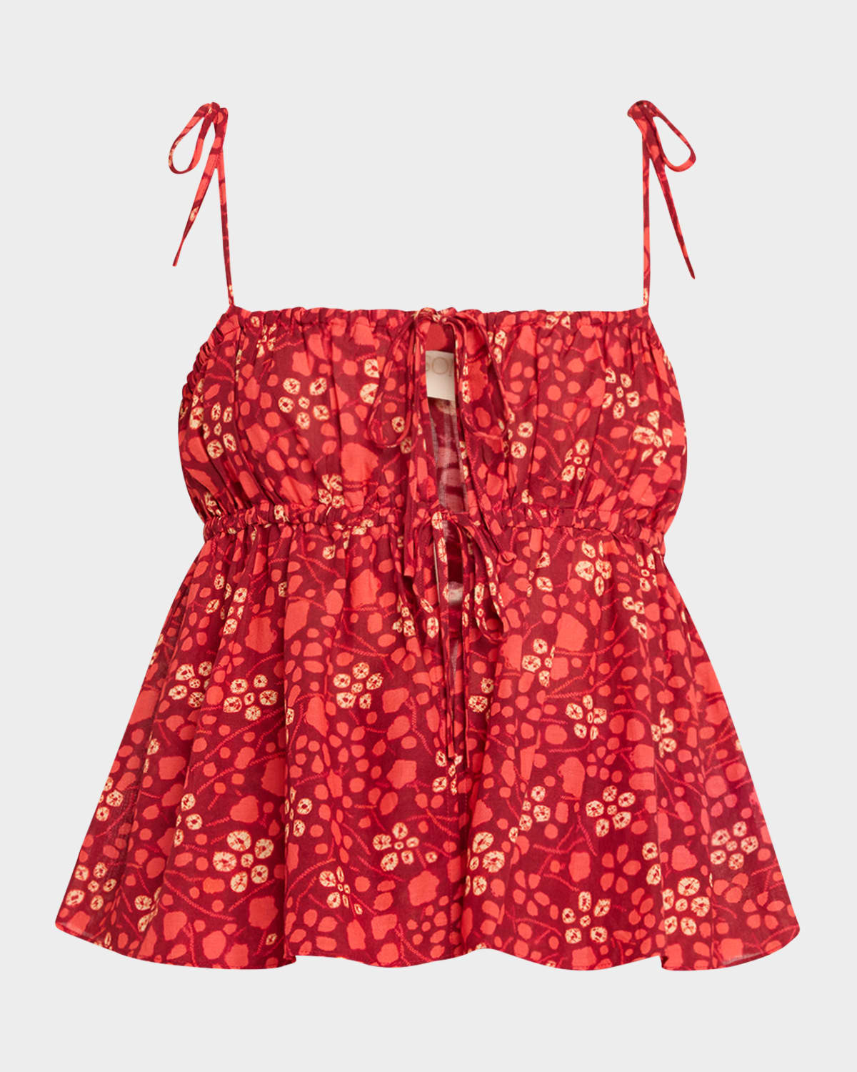 - Ulla Johnson "Tallulah" floral-printed top with delicate self-tie shoulder straps - Square neckline - Sleeveless - Hip length - Dual front self-ties - Cotton/viscose - Dry clean - Imported