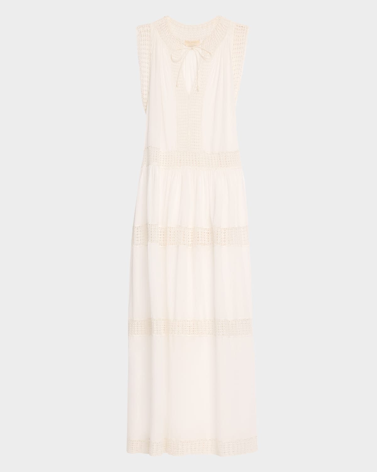 - Ulla Johnson "Thalia" maxi dress features open-knit crochet paneling throughout - High neckline; optional self-ties - Sleeveless - Full length - Slipover style - Cotton - Dry clean, machine wash cold - Made in Portugal - Model is 5'10"/177cm.