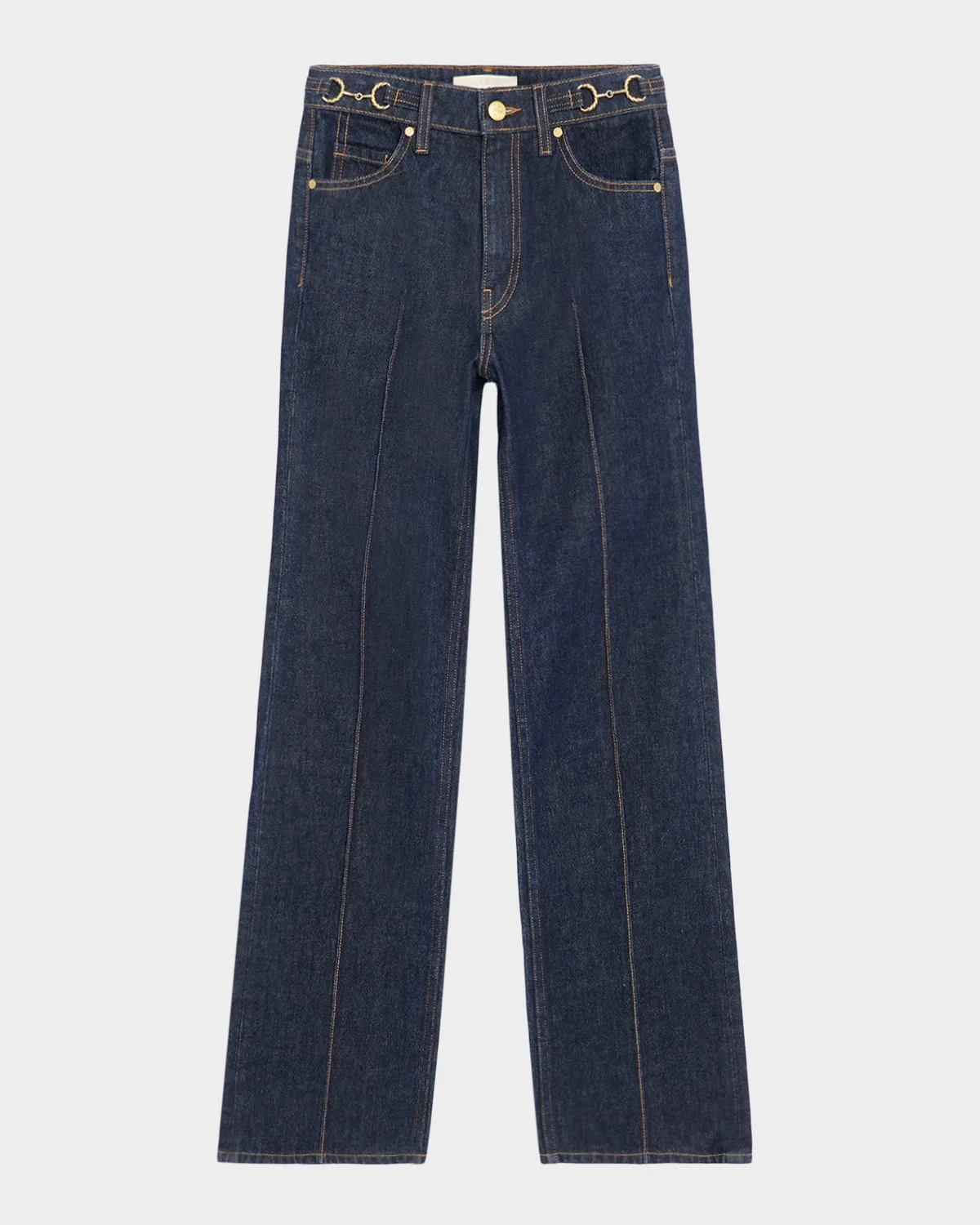 Tailored in rigid denim, the "Agatha" jeans by Ulla Johnson are adorned with signature handhammered ring detailing at the waist and a pintuck front. Midrise; sits high on the hip Fivepocket style Slim, straight legs Full length Button/zip fly; belt loops Cotton Machine wash cold Made in USA