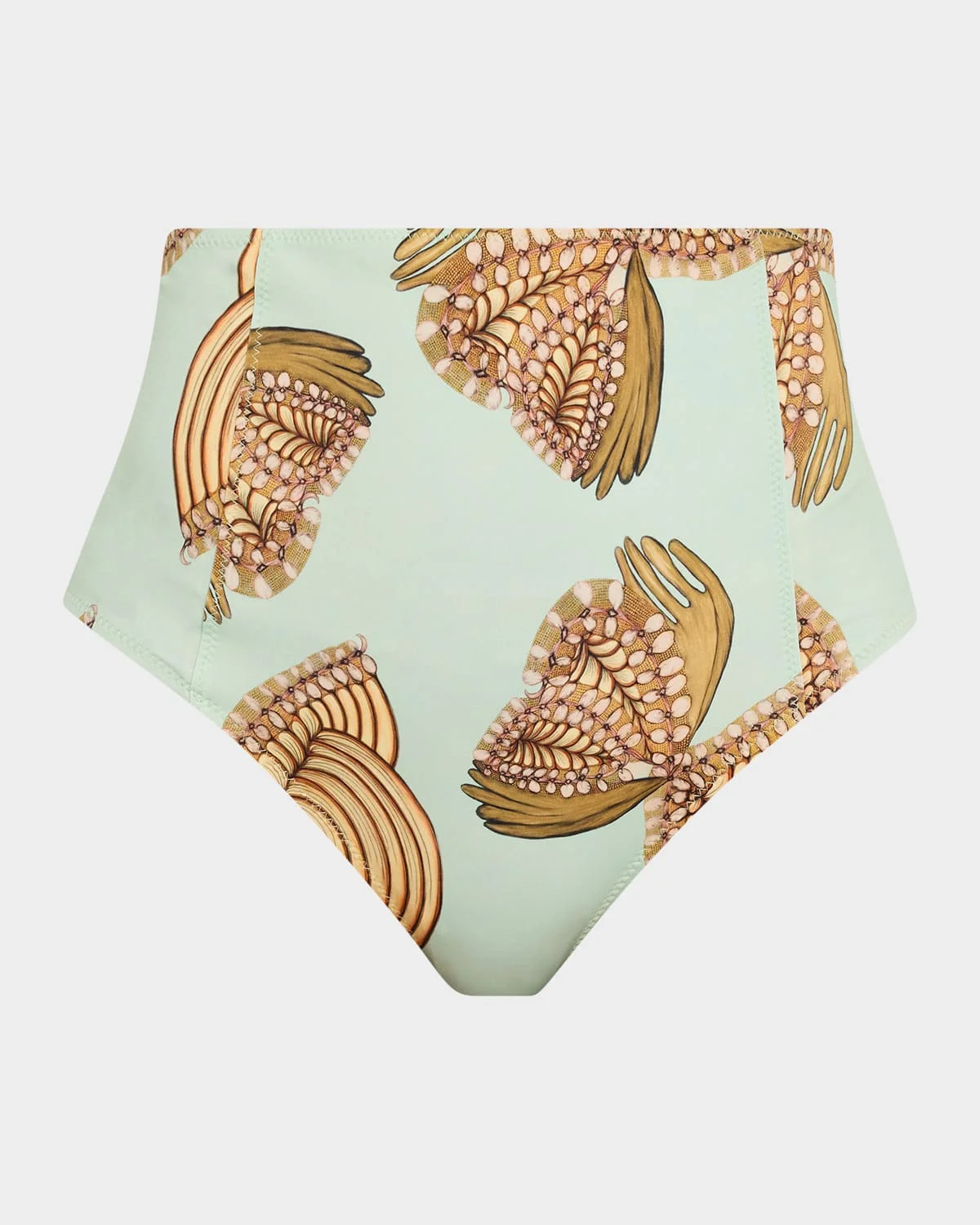 Designed in Italian swim fabric, the "Zahara" paneled bikini bottoms by Ulla Johnson are illustrated with ethereal botanical motifs High waist Moderate seat coverage Nylon/polyamide/elastane Made in Portugal Top sold separately