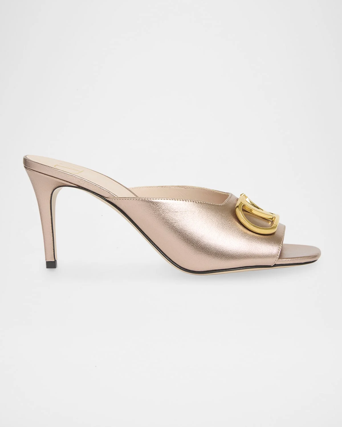 80mm VLogo Signature Metallic Leather Mule Pumps
