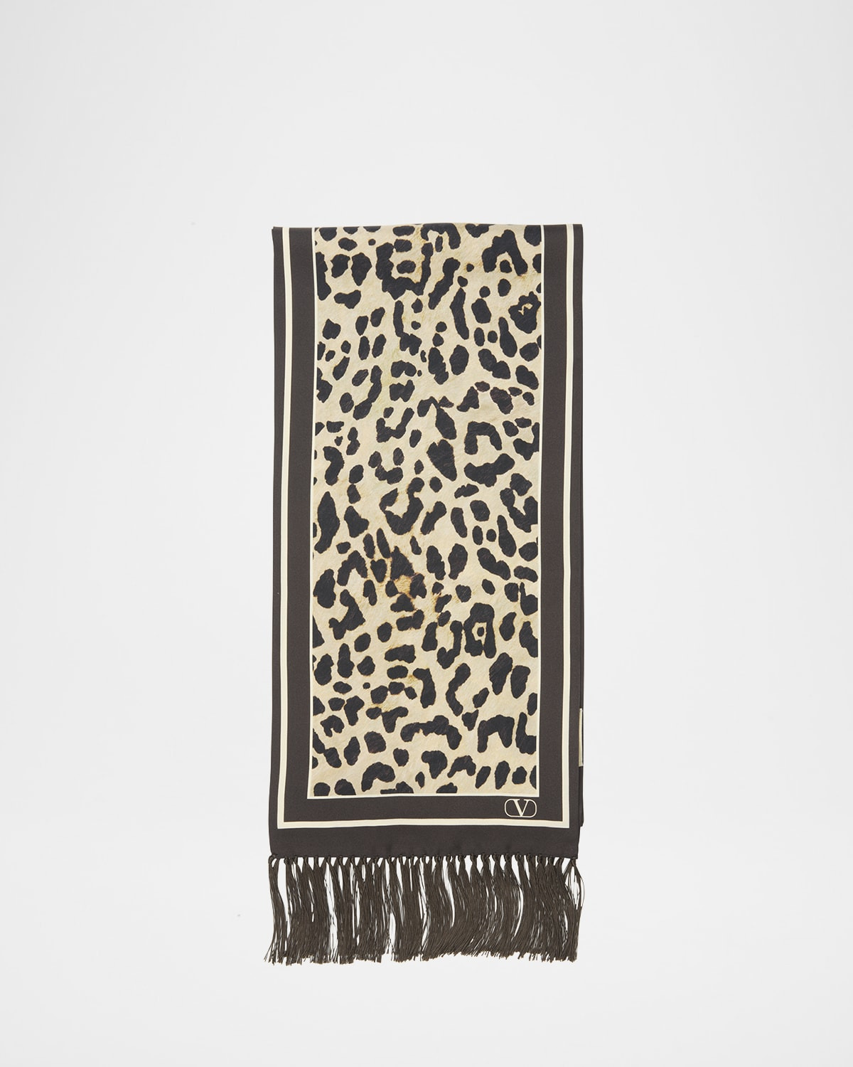 - Valentino twill scarf in an animal motif - Approx. 70.8"L x 9.4"W - Can be styled in multiple ways - V Logo on the corner - Fringe ends - Silk/viscose - Made in Italy