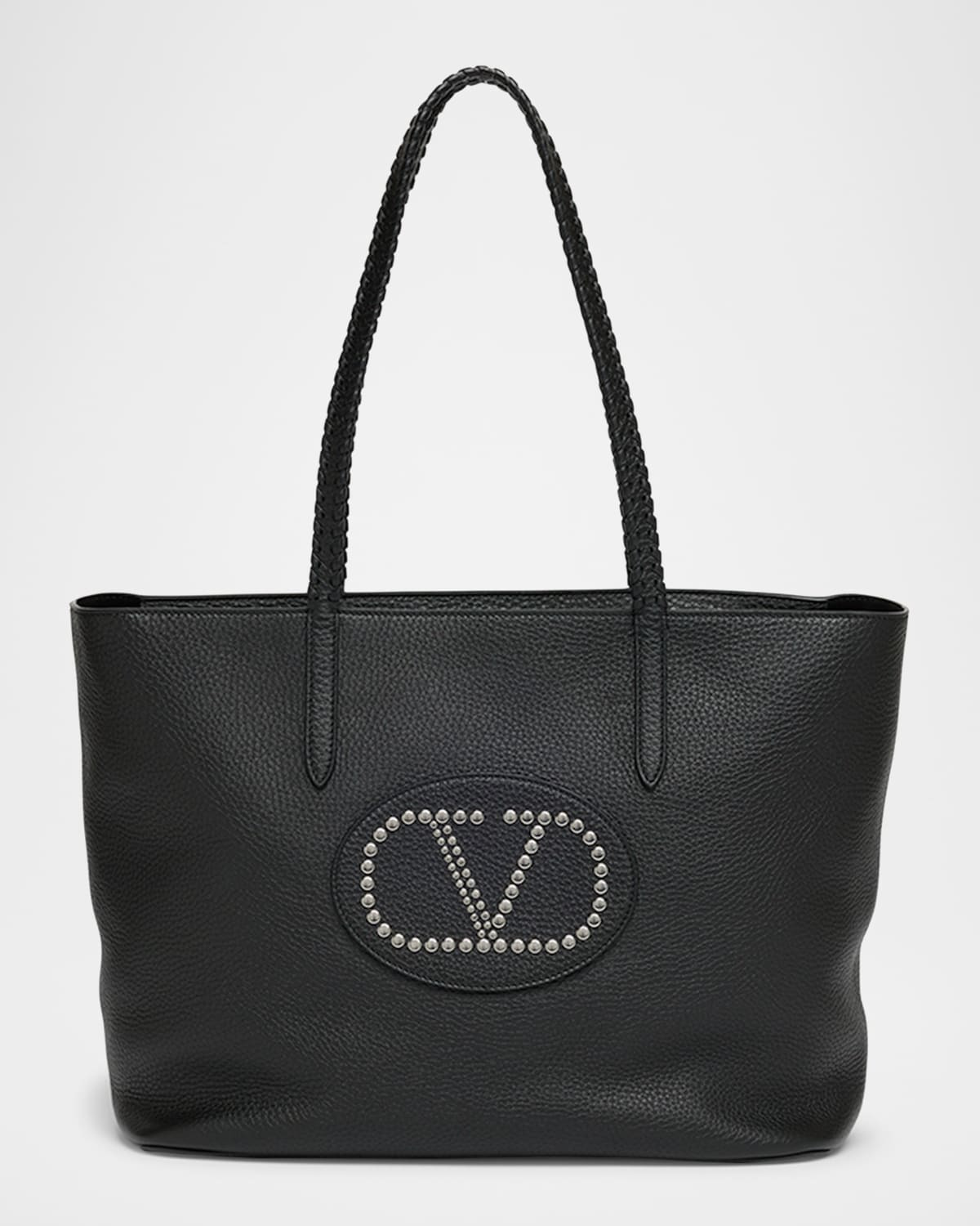 - Valentino Garavani "Avec Toi" tote bag in Nappa leather with signature VLOGO in metallic rivets - Whipstitched top handles - Zip top closure - Interior, one slip pocket - Approx. 11"H x 13.8"W x 6.1"D - Made in Italy