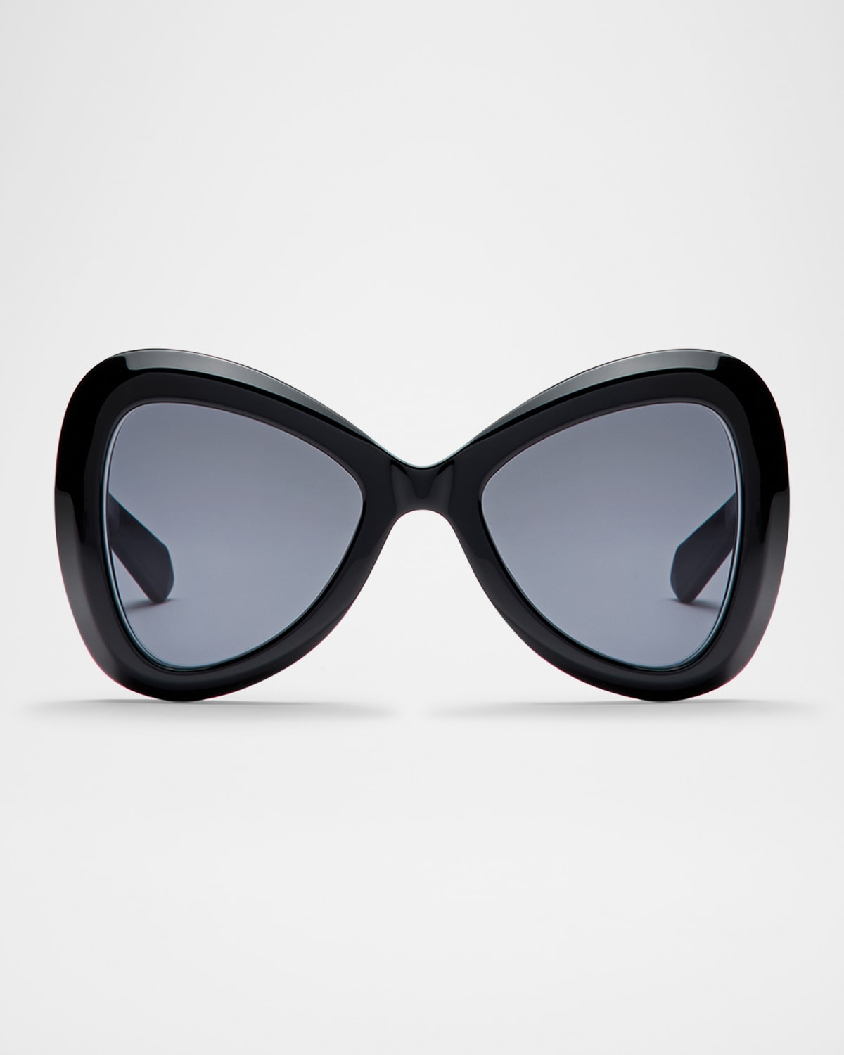 - Valentino Garavani butterfly sunglasses in acetate - Lens/bridge/temple (in mm): 53-22-140 - Solid-color lenses - Signature V cutout on temples - Wide, tapered arms - 100% UVA/UVB protection - Made in Japan - Proposition 65 warning for California residents