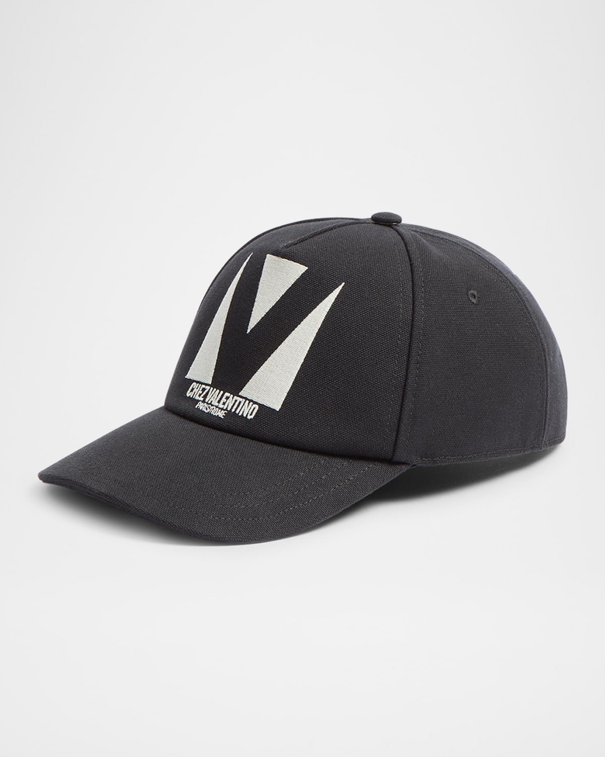 - Valentino baseball cap with Chez Valentino embroidery - Top button - Six-panel construction - Curved stitched brim - Adjustable back strap - Cotton - Made in Italy