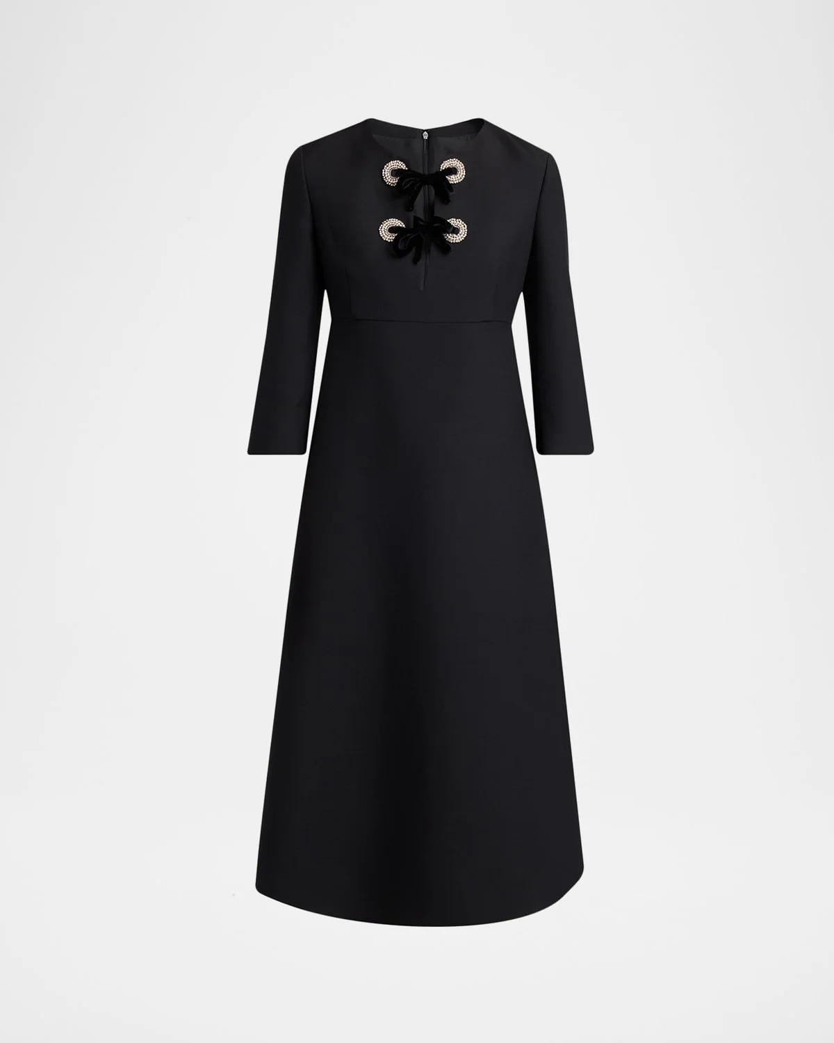 Crystal Velvet Bow 3/4-Sleeve Midi Dress