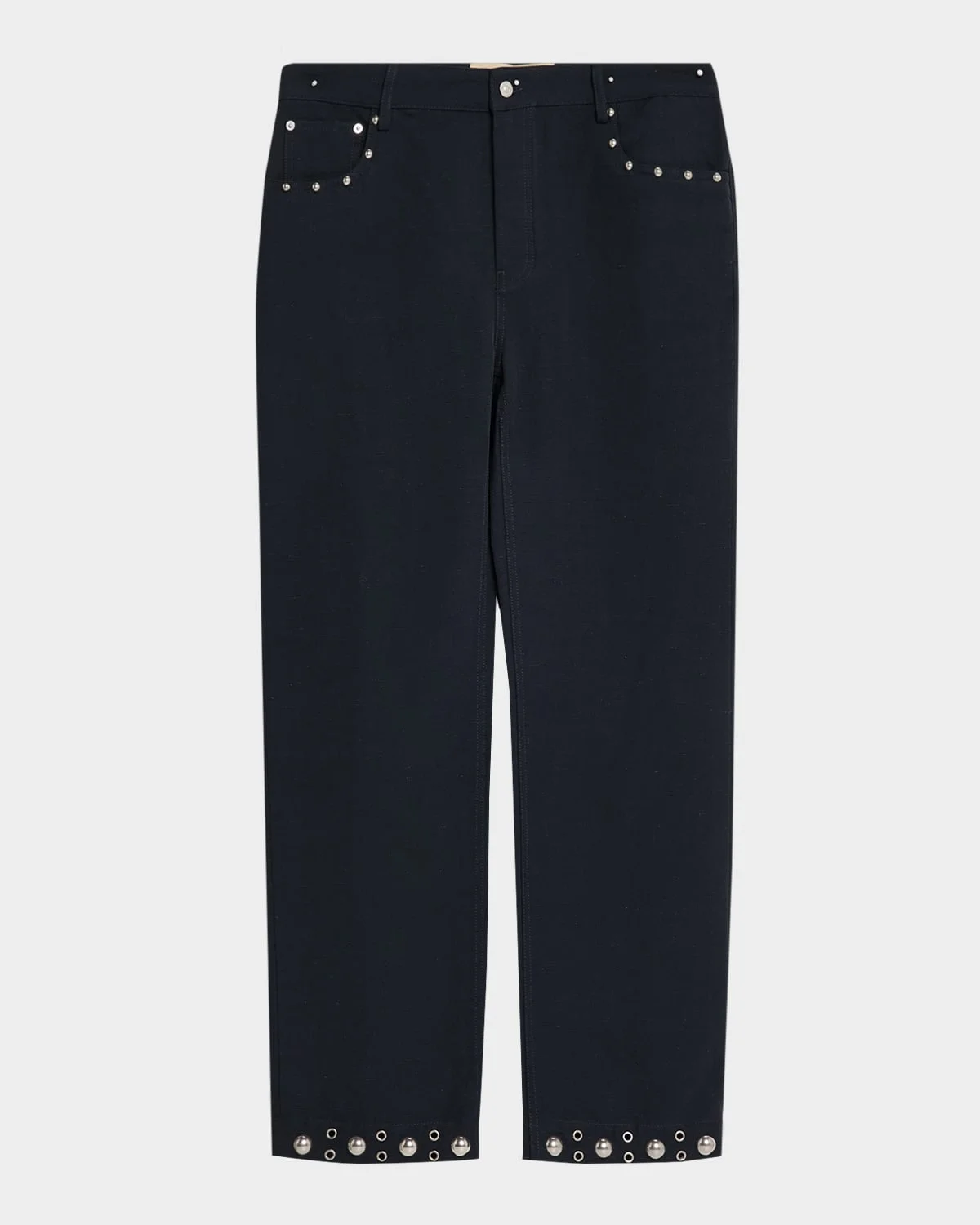 Valentino Garavani jeans with metal cabochons and rivets for a oneofakind, edgy finish. Regular rise Fivepocket style Leather label Classic fit through straight legs Cabochons at the hem Full length Buttonzip front; belt loops Cotton Lining: Cotton Made in Italy