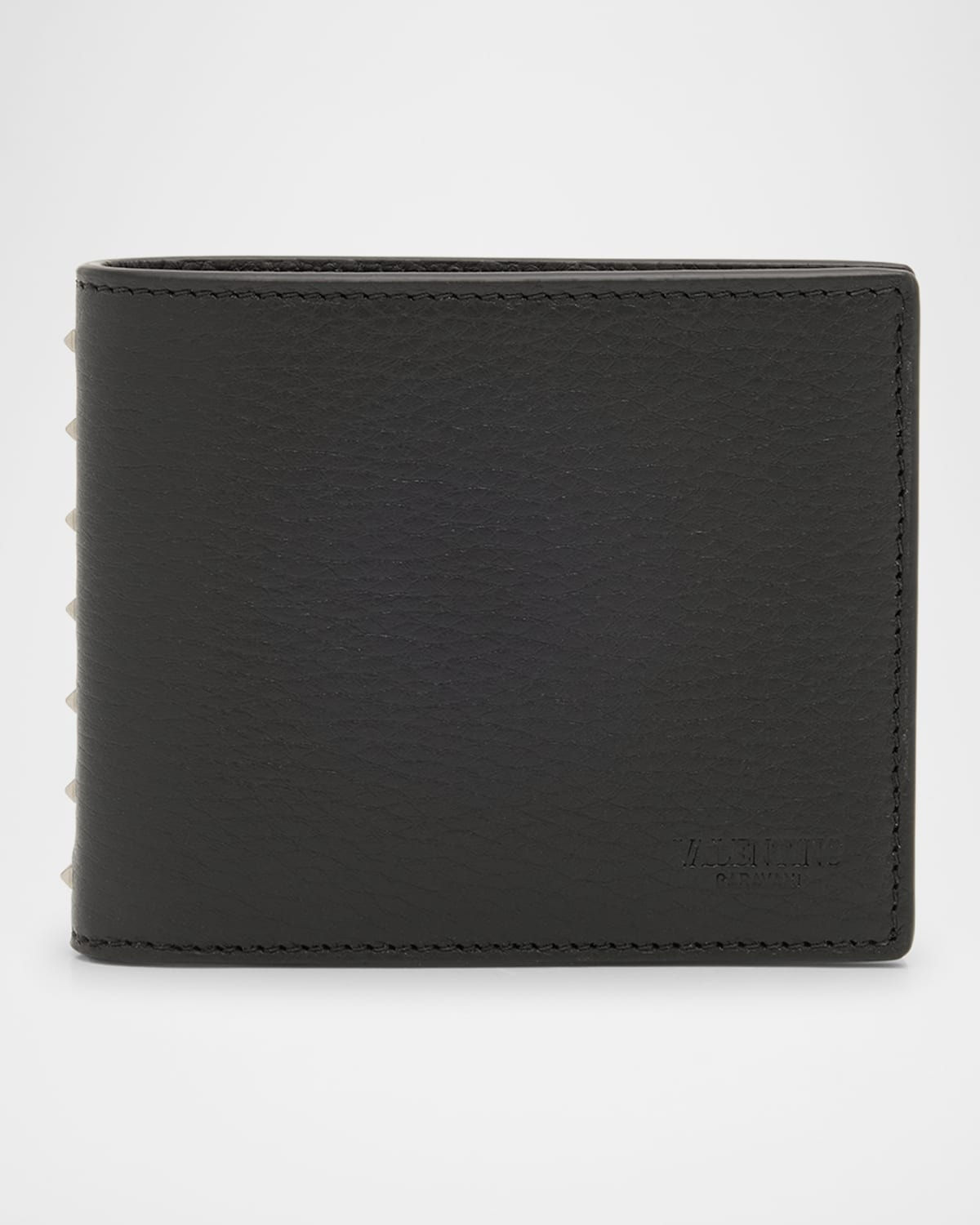 - Valentino bifold wallet in grained leather with debossed logo lettering on the front and interior - One note compartment - Two side slip pockets - Eight card slots - Approx. 3.5"H x 4.3"W - Made in Italy