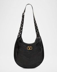 This "Hoboho" Valentino Garavani hobo bag features a patchwork chevron design in nappa leather, decorated with the signature VLogo accent in antiquefinished brass Adjustable studded shoulder strap, 19.7" drop Open top Nappa leather lining Approx. 10.6"H x 13.8"W x 1.6"D Made in Italy