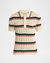 - Valentino Garavani in ribbed stripe cotton eyelet fabric accented with the gold-tone VLogo Signature on the chest pocket - Spread collar - Three-button placket - Short sleeves - Ribbed cuffs and hem - Pullover style - Cotton - Made in Italy