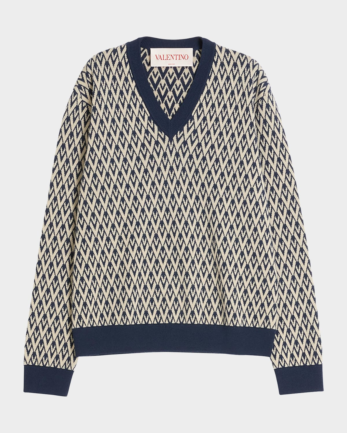 - Valentino Garavani sweater in V patterned jacquard - V-Neck - Long sleeves - Ribbed trim - Pullover style - Virgin wool - Made in Italy - Model is 6'1"/185cm.