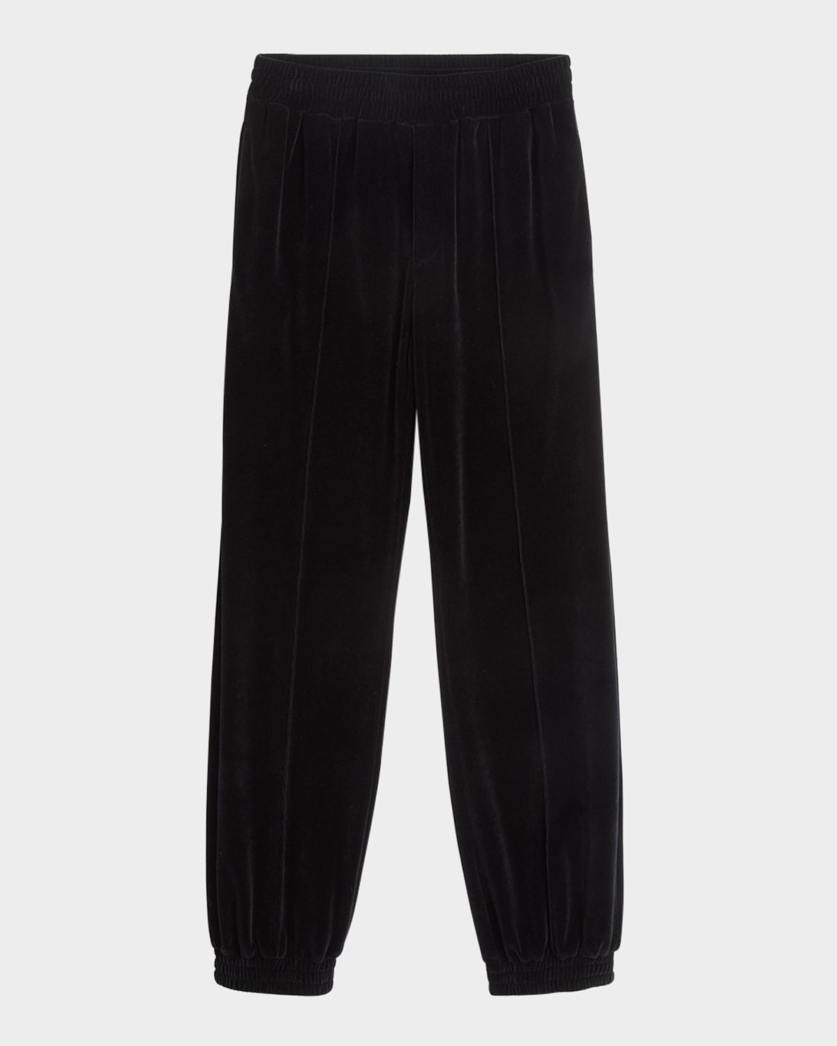 - Valentino Garavani pants made of soft chenille - Elasticized waist - Side pockets - Back patch pocket - V logo patch at back pocket - Full length - Relaxed legs - Elasticized cuffs - Cotton/nylon/polyamide - Made in Italy