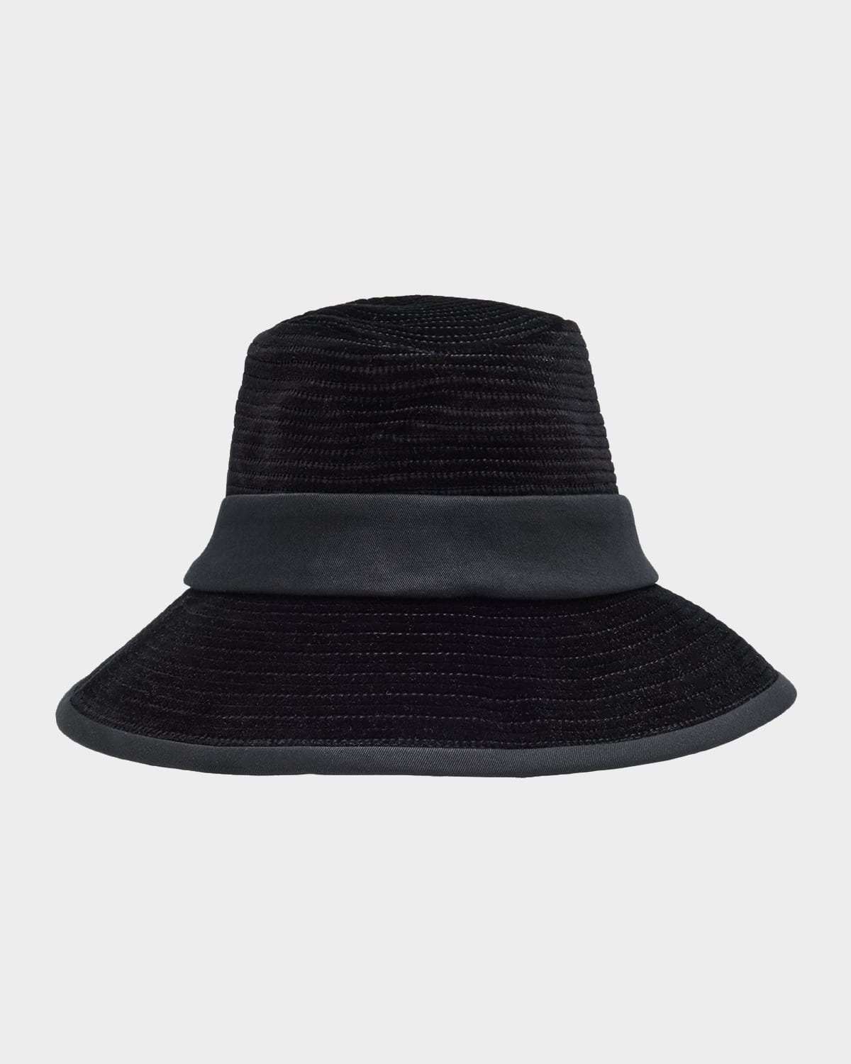 Valentino Garavani fedora hat in soft ribbed velvet with tonal fabric trim Accented with goldtone VLogo signature hardware Flat heel Downturn brim Cotton/metal Made in Italy
