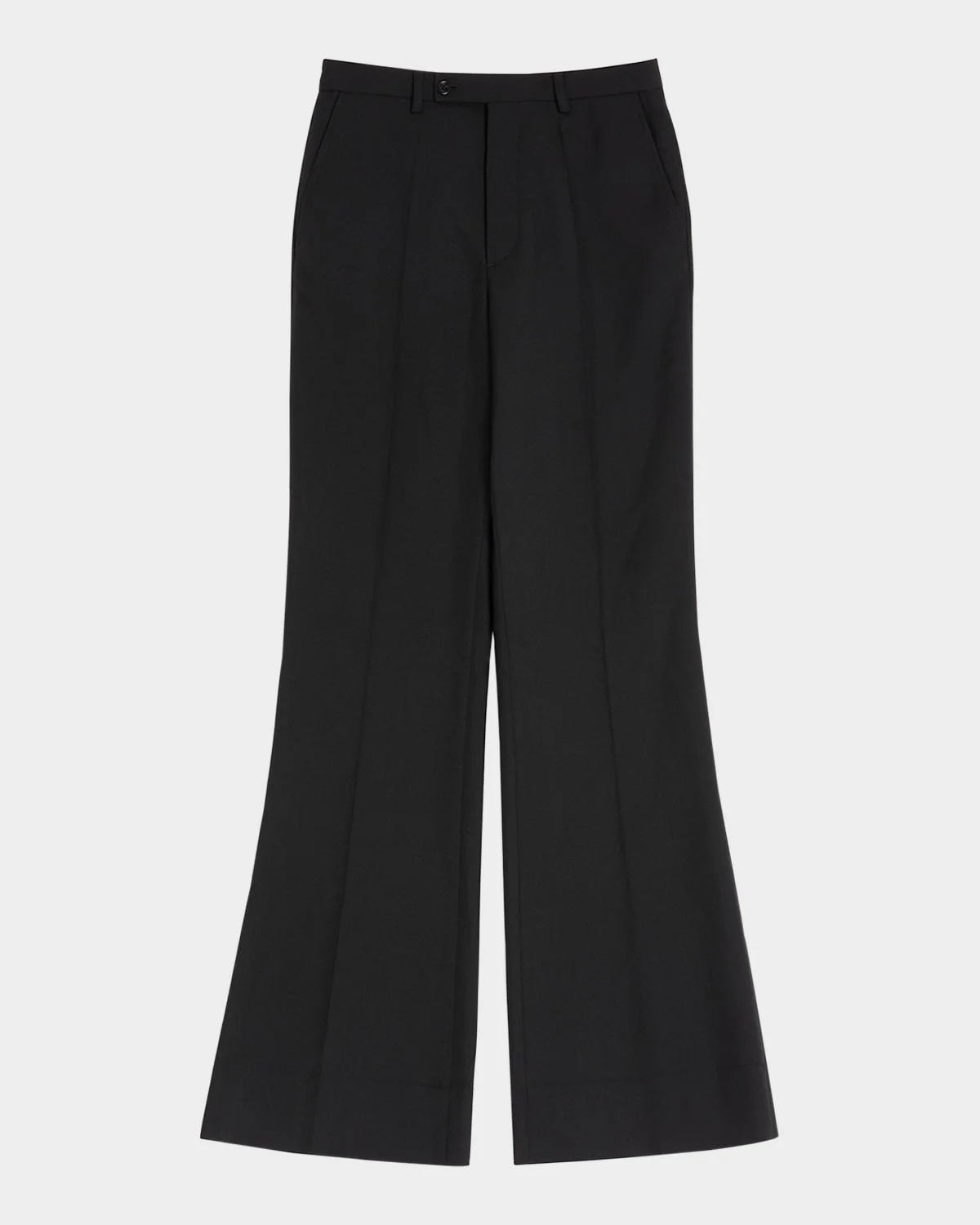 Valentino Garavani pants are defined by a wide, flared leg for a sleek and stylish silhouette Regular rise Flat front Side slip pockets Back welt pockets Classic fit through flared bootcut legs Full length Extended buttonzip front; belt loops Polyester/wool/cotton Made in Italy