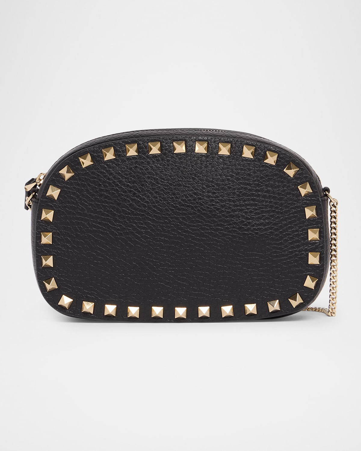 - Valentino Garavani leather crossbody bag with signature Rockstuds - Chain crossbody strap - Zip top closure - Interior, two card slots - Approx. 4.9"H x 7.5"W x 1.8"D - Made in Italy