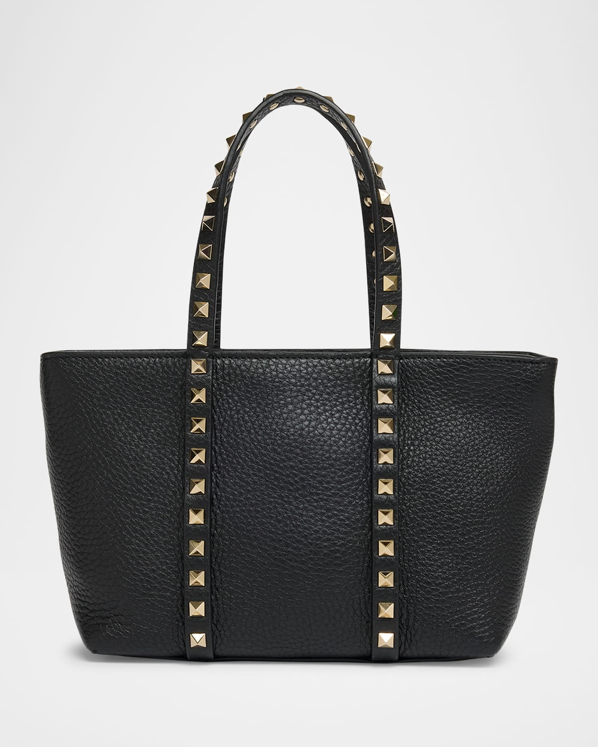 - Valentino Garavani leather tote bag with signature Rockstuds - Top handles - Detachable, adjustable crossbody strap - Can be worn as a top handle or crossbody bag - Zip top closure - Feet protect bottom of bag - Approx. 6.3"H x 7.9"W x 2.8"D - Made in Italy