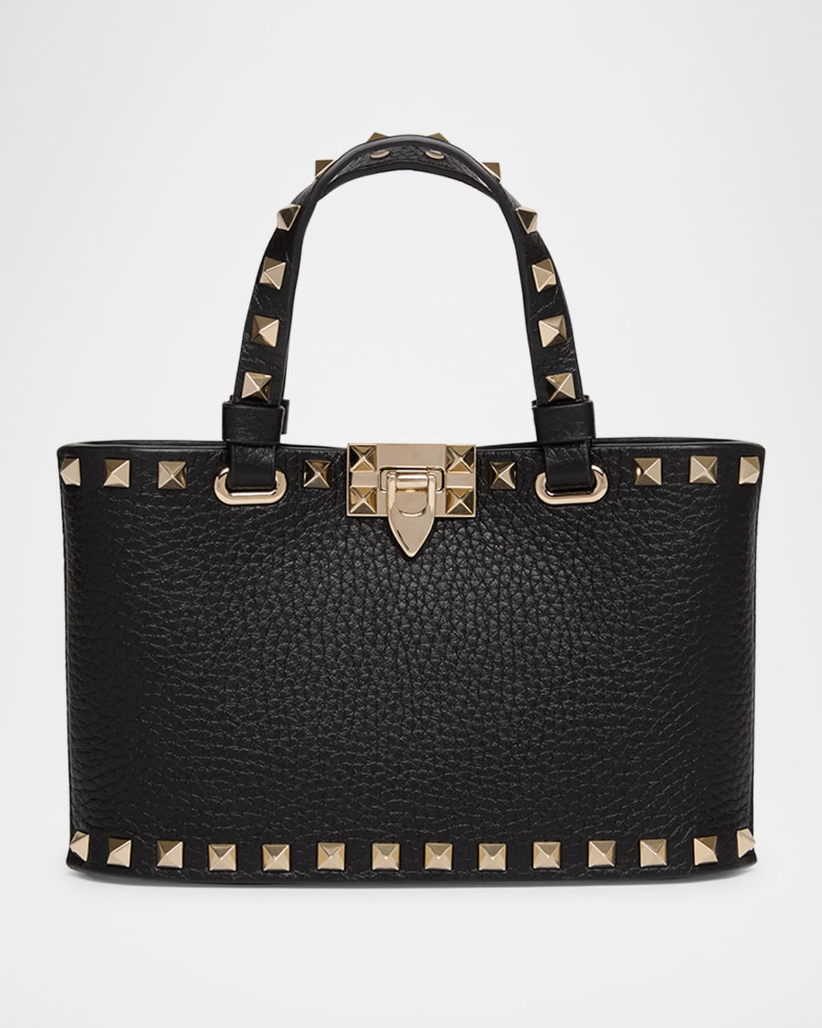 - Valentino Garavani leather tote bag with signature Rockstuds - Top handles - Detachable chain crossbody strap - Can be worn as a top handle or crossbody bag - Open top with lift-clasp closure - Approx. 4.9"H x 7.3"W x 2.2"D - Made in Italy