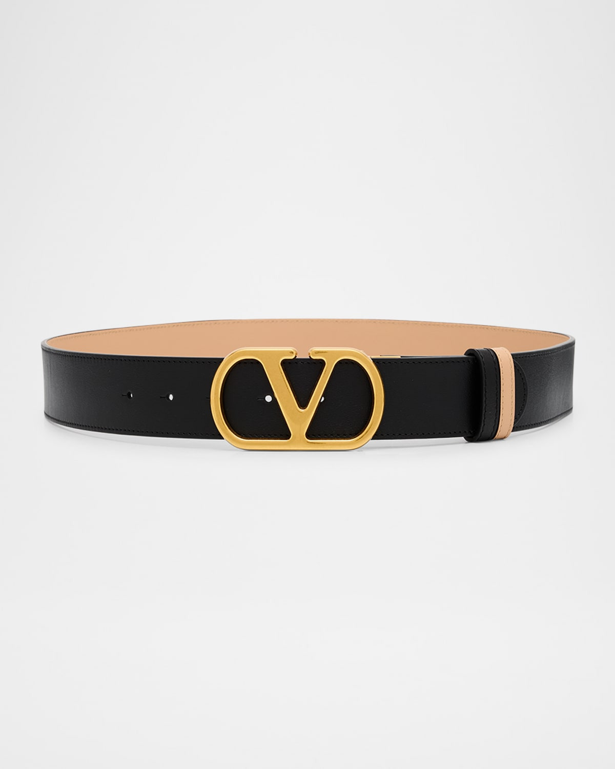 - Valentino Garavani reversible belt in glossy calfskin leather - Approx. 1.5"H - Contrast keeper straps - VLogo Signature buckle closure - Leather - Made in Italy