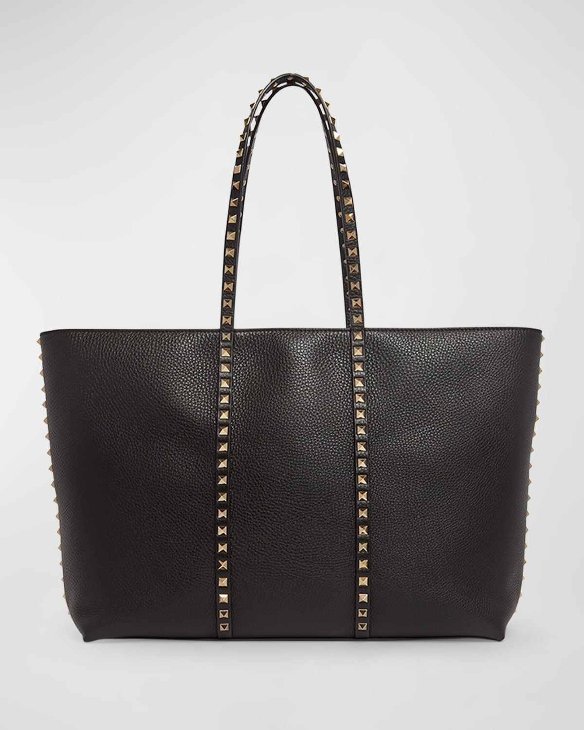 - Valentino Garavani grainy leather shopper tote bag with signature Rockstuds - Shoulder straps - Zip top closure - Interior, one zip pocket - Feet protect bottom of bag - Approx. 10.6"H x 14.6"W x 4.8"D - Made in Italy