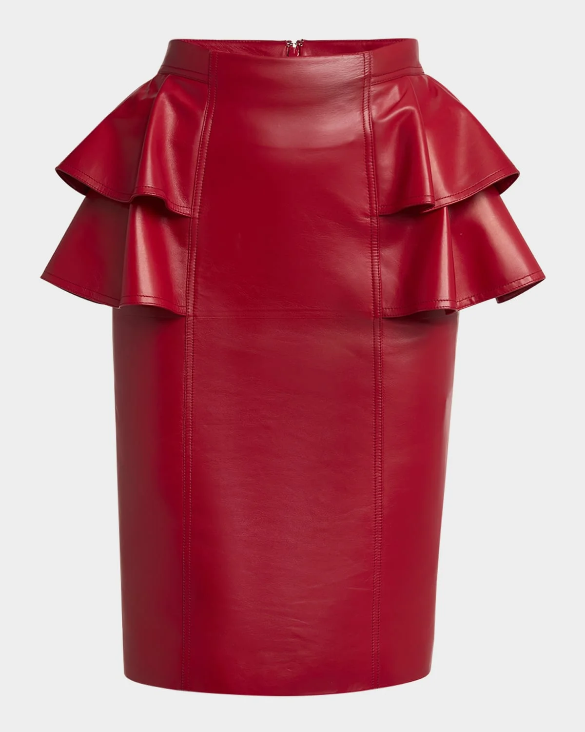 - Valentino Garavani skirt crafted in nappa leather with layered side ruffles - Sits high on the hips - Hem hits around the knee - Pencil silhouette - Back zipper - Leather - Lining: Acetate/silk - Made in Italy